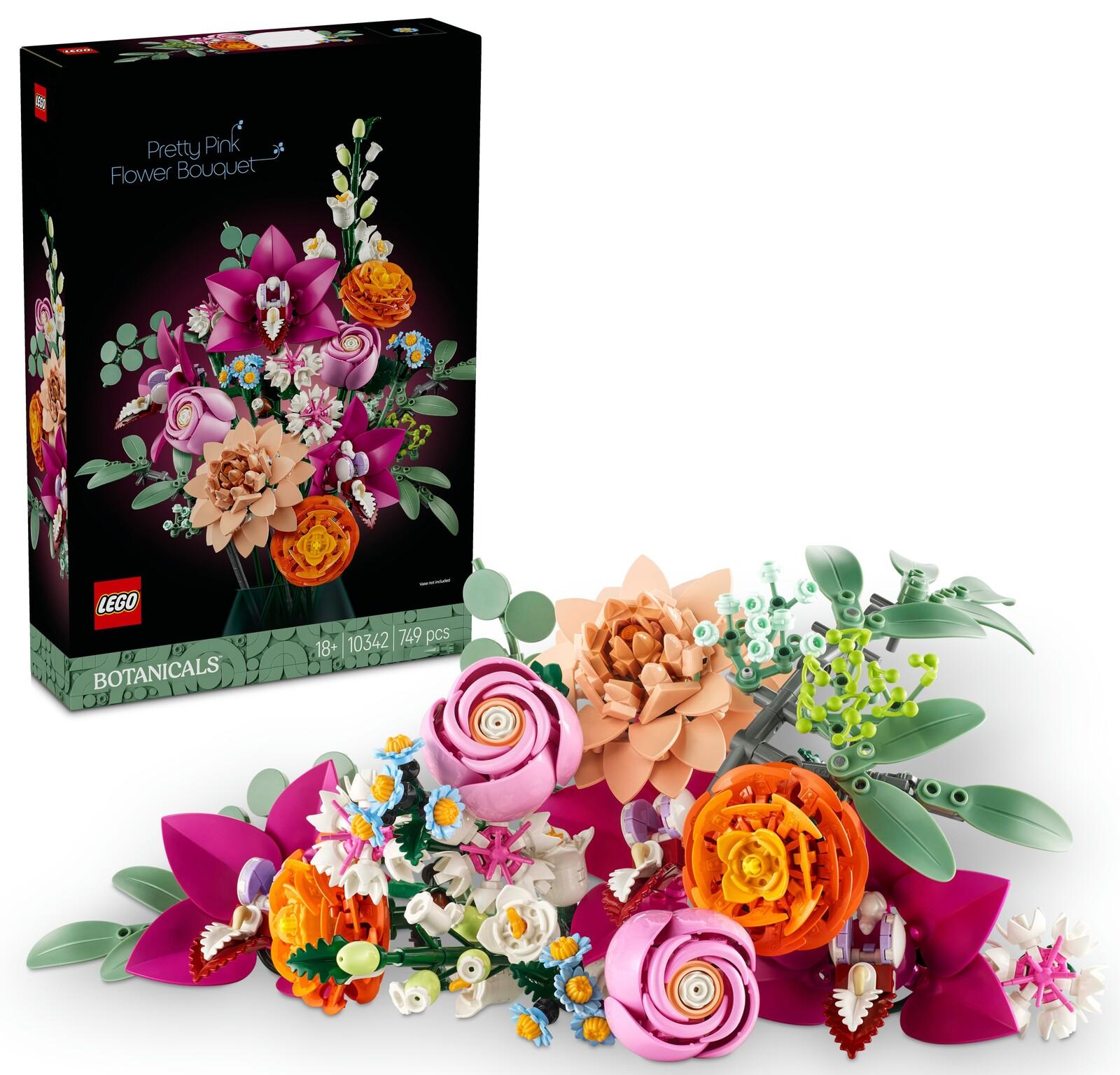 *Let creativity bloom with a colourful LEGO flower display*Cultivate creativity with the LEGO Botanicals Pretty Pink Flower Bouquet (10342) building kit for adults. Bursting with authentic blooms and lovely colours that will never fade, this LEGO flower decor set is a delightful gift for women, men and nature-lovers.Budding florists can relax and unwind as they build the bouquet, which consists of 15 LEGO flower stems, including daisies, cornflowers, eucalyptus, elderflowers, roses, ranunculus, cymbidium orchids, a waterlily dahlia and a campanula. All the stems are adjustable, encouraging builders to arrange a bespoke bouquet that they can use as floral home or office decor. For added customisation, the flowers can be arranged with other LEGO bouquets, sold separately, to create a larger, unique floral display.A thoughtful Mother’s Day gift, Valentine’s Day gift or housewarming gift, these customisable LEGO flowers are sure to be treasured forever by loved ones.*Features:** Creativity blooms with the LEGO Botanicals Pretty Pink Flower Bouquet* The set features 15 buildable flowers, orchids, ranunculus and roses* Each flower has an adjustable stem, letting builders create a bespoke bouquet* Once complete, the LEGO flower set becomes a piece of home or office decor* The LEGO flowers are a nature-inspired gift for women, men and flower-lovers* This set includes printed and digital versions of the building instructions* Discover other sets (sold separately) in the LEGO Botanicals collection* This 749-piece set has cymbidium orchids standing over 32 cm (12.5 in.) tall*Specifics:**Item*: 10342*Pieces*: 749*Ages*: 18+