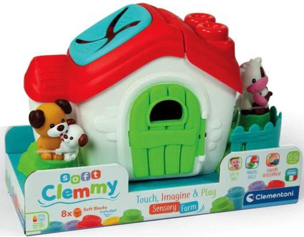 *Baby Clemmy: Clemmy Sensory Farm*A Farm themed playset full of textures with raised surfaces, soft signature-Clemmy inserts, lots of blocks and friendly farm animals. The sensory farm contains lots of soft Clemmy blocks that can be stacked, squashed and easily slotted in through the windows and roof.The barn roof can be opened for play and then closed once the blocks are safely put back for storage. The playset activities help children to make logical links as well as developing manual dexterity and hand-eye coordination.Multiple surfaces with raised parts and different textures encourage kids to explore and develop their sense of touch.*Features:** These activities help children to make logical links as well as developing manual dexterity and hand-eye coordination.* Multiple surfaces with raised parts and different textures encourage kids to explore and develop their sense of touch.* The attractive setting and cute characters make for spontaneous creative play and children will be able to invent a host of farm-related stories about the farm.* Conceived, designed and developed in Italy.*Specifications:** *Brand:* Baby Clemmy* *Suitable age:* 10–36 months* *Size:* 33 × 24 × 6cm