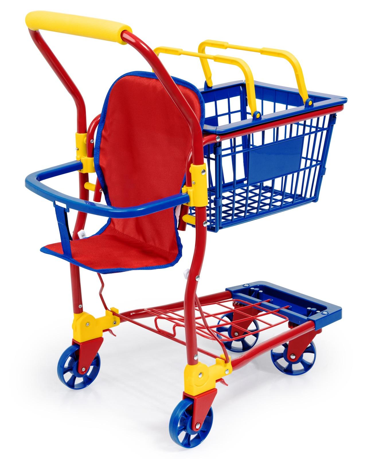 *The solid shopping cart for kids is the perfect accessory for playing shopping*The basket can be used either separately or together with the shopping cart for shopping. The large doll seat is ideal for always having your favourite doll or soft toy with you.*Features:** In addition to the basket, the shopping cart offers further storage space.* Thanks to its storage option underneath the basket.* The set includes various play food boxes (e.g. sugar, milk, cocoa).* This way, the children can buy different goods and keep rearranging their shopping list.* The cart is suitable for dolls up to 46cm.*Suitable for ages 3 years and up*
