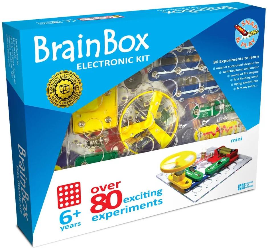 *Brain Box: Mini Experiment Kit*Brainbox manufacture a great range of electronic kits with a cool easy to use press-stud system for making the contacts. Kind of like the kits around when I was a kid but much easier to use and no pesky wire to lose or stab yourself with.*Details:** As with all Brainbox kits there is no soldering or trimming required* The kit uses simple brightly coloured components with press-stud connectors.* Requires: 2 AA batteries (not included)* Build over 40 exciting experiments*Suitable for ages 8 & up*