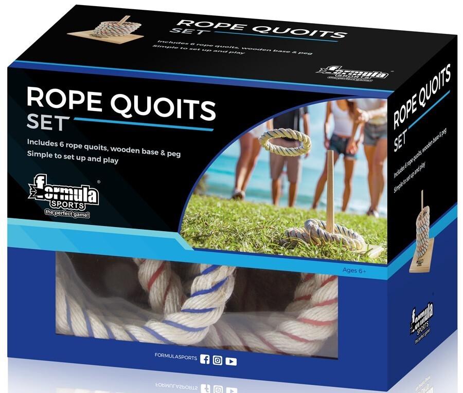 *Formula Sports: 2.0 Rope Quoits*An Australian classic loved by all ages; Rope Quoits from Formula Sports is the retro game you need for your next backyard barbie.This ain’t no plastic knock-off, Formula Sports Rope Quoits are designed to last generations. The base is made from hard-wearing rubberwood and is paired with thick rope rings of just the right weight. An easy to play and timeless game, Rope Quoits can be cracked out at a family picnic, during a catch up with friends or when you need to distract the kids (big kids included!) during your next camping trip.*Features:** Classic game fun for all ages* Made from durable rubberwood & quality rope* Simple to play* Easy to take with you anywhere*Suitable for Ages 6+*