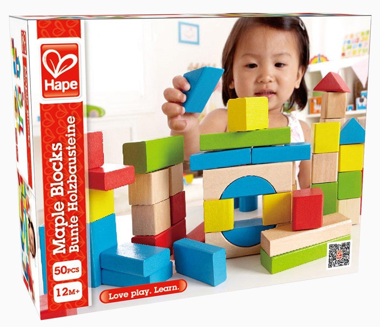 *Hape: Maple Wood Blocks Set – 50pc*These sturdy Maple Wooden Blocks from Hape will inspire hours of play and generations of builders. Perfect first block set for babies and toddlers promotes dexterity and hand/eye coordination. Durable child safe paint finish and solid wood construction are hallmarks of Hape toys. Hape's toys stimulate children through every stage of development and help nurture and develop their natural abilities.* 50 piece brightly colored block set* Canvas bag for easy storage* Perfect first block set for babies and toddlers* Hape finishes are all non-toxic, child safe, and of the highest qualityFor ages 12 months – 3 years_Hape Toys is one of the world’s largest producers of toys made from sustainable materials. Hape toys are both creatively designed and eco-friendly. Neither culture, nor language, nor gender inhibits the intuitive process of play. All of the products meet, and more often, exceed the strictest international standards for quality and safety.__Hape toys are designed first and foremost for children. Each product is developed to enhance a child’s developmental skills. Neither language, nor culture, nor gender impedes the intuitive play patterns. What children see as fun, parents and educators recognize as age-appropriate learning basics; social, sensory, physical, and emotional skills. Using natural materials, water-based paints, and strict quality and safety standards make every Hape toy an investment kids will love and parents can trust._