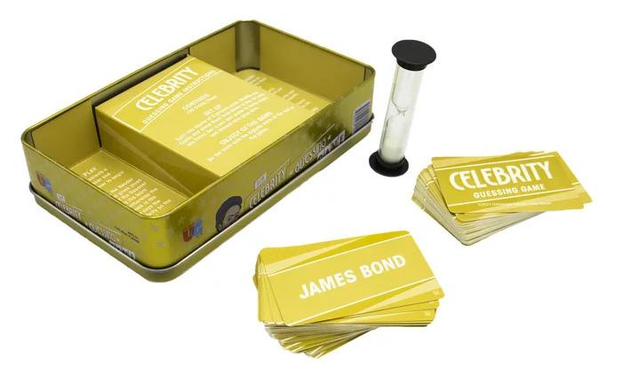 *Guess the celebrity without hearing their name, beating the clock is the name of the game!*Quickfire clues will help you win, listen for answers over the din. Name the face behind the clue. Who's the winner? It could be you!The Celebrity Guessing Game is a fantastic party game staple for 4 or more players ages 8 and up in which players work in teams to guess the most celebrity cards before time runs out.Complete with 150 cards, instructions and sand timer all in a highly giftable tin.This is the perfect stocking stuffer or on the go item for your next party or game night!*Features:** Act, mimic, and speak clues to get players to guess the celebrity* A great party game to bring people together over their favourite celebrity* Fun for the whole family!* A fast paced interactive game that gets everyone involved* Quick fire clues keep the game at a fast pace