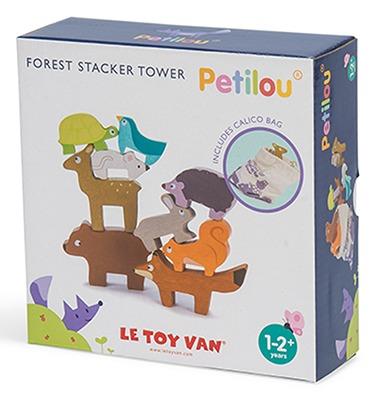 *Le Toy Van: Petilou – Forest Stacker Tower & Bag*Forest stacker tower that comes with matching mag bag. A beautiful collection of adorable and sweet animals. Comes with 9 woodland animals; Tortoise, bird, mouse, deer, bear, hedgehog, rabbit, squirrel and sweet fox. How high can they be staked before it tumbles?*Features:** Petilou is a toy brand developed by Le Toy Van, featuring a range of stunning baby and toddler toys.* Le Toy Van is a multi-award winning toy producer who ensure fair trading at every stage of production and ethical conditions for their workforce.* Their painted wooden toys are made using sustainable wood and non-toxic paint.* Dimensions: 23cm x 18*Suitable for ages 1 & up*