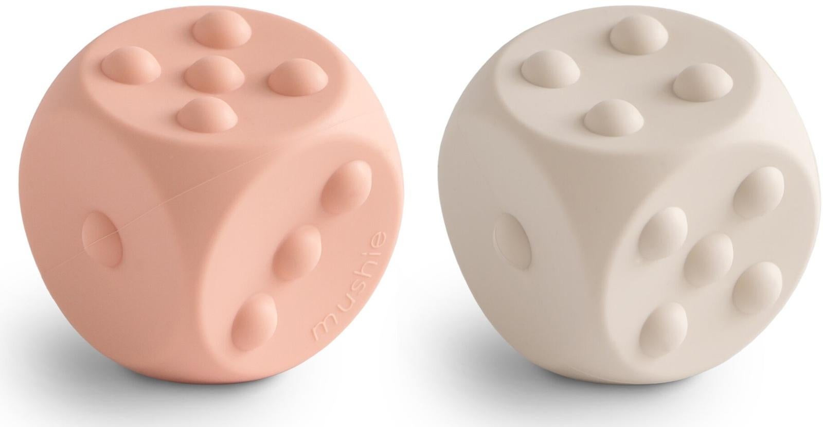 *_Mushie: Dice Press Toy – Blush/Shifting Sand (2 Pack)_*he Dice Press Toy is a fun sensory toy that combines learning and play. The toy features dots that can be pushed and popped.This encourages fine motor skill development while also providing a tool for teaching counting and simple arithmetic. It is made from food-grade silicone in soft colors and a simple design.The Dice Press Toy provides endless hours of fun for the little ones.*Features:** Let the little ones learn while they play with our beautiful products from Mushie.* Our toys will stimulate the senses and develop both body and brain.* Material: 100% food-grade silicone* Age: 10+ months* Wash with warm, soapy water and let air dry