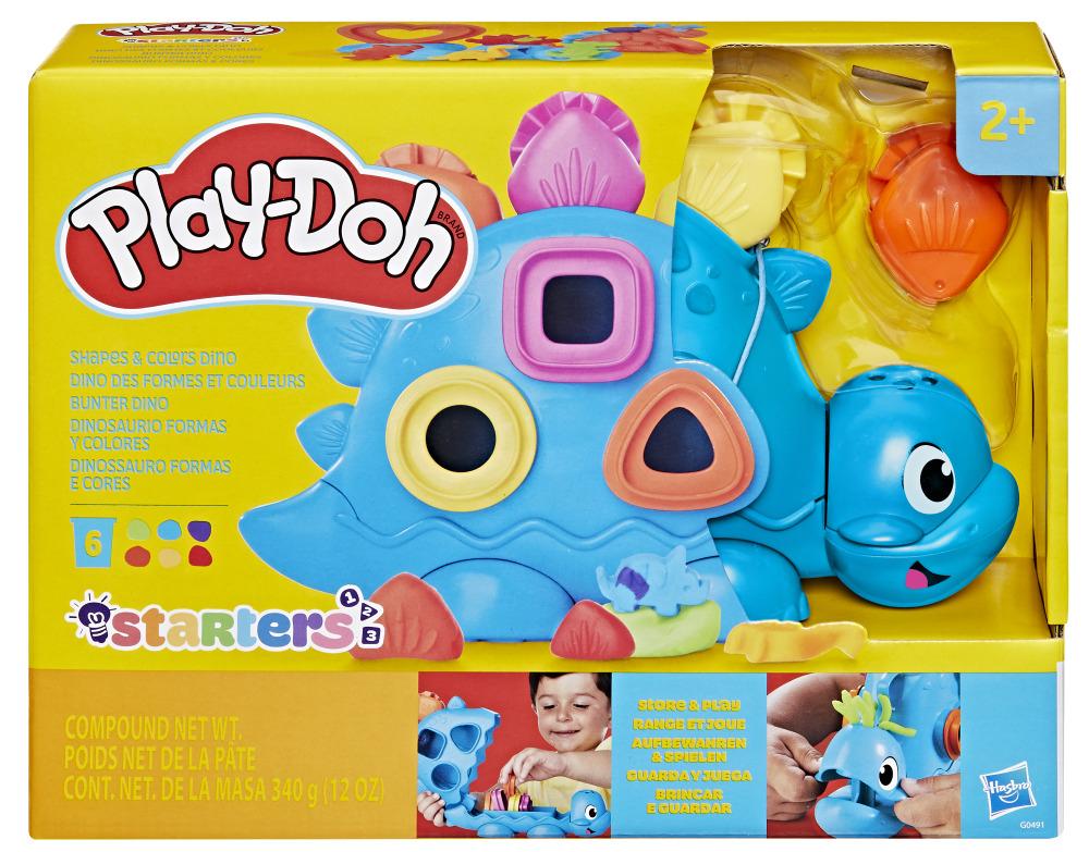 *Play-Doh: Shapes and Colors Dino*It’s time for a dinosaur party with the Play-Doh Shapes & Colors Dino! This preschool toy set features a variety of fun activities with an adorable dino friend. Cut and roll different shapes with Play-Doh accessories. The handy dino also stores the tools both inside and outside the kids playset.The playmat has fun matching activities that also help kids keep their Play-Doh creations off the table. It’s a great imagination toy that can help encourage them to practice fine motor skills and discover shapes and colors with tactile sensory play. Boys and girls dinosaur toys just got a lot more colorful!*Features:** Discover shapes and colors with a prehistoric buddy featuring 11 big, chunky tools and fun sensory play activities for kids 2 years and up* Make the toy dinosaur grow hilarious Play-Doh hair on its head by filling with compound and pressing down* The spikes are removable rolling cutter tools and the shape cutters attach to the sides. Store the rest of the pieces in the stegosaurus toy's back for next time* Engage kids in matching activities and creative storytelling with the colorful scene on the playmat and Play-Doh tools* When kids are little and still learning, toys like this Play-Doh kit can help them explore fine motor skills and shape matching* 2-ounce cans of Play-Doh modeling compound include green, blue, purple, orange, yellow, and red (contains wheat)* Preschool toys like this Play-Doh set are great gifts for boys and girls who love pretend play dinosaur toys and kids arts and crafts*Suitable for Ages 2+*