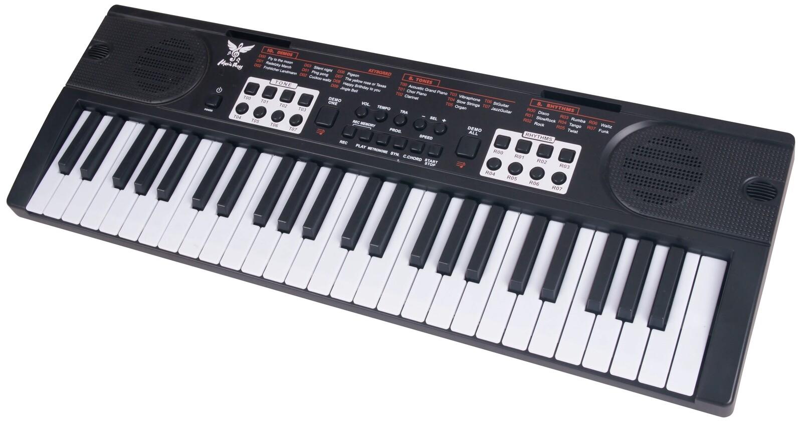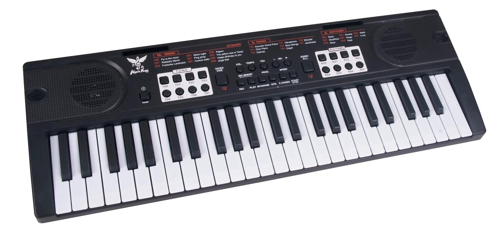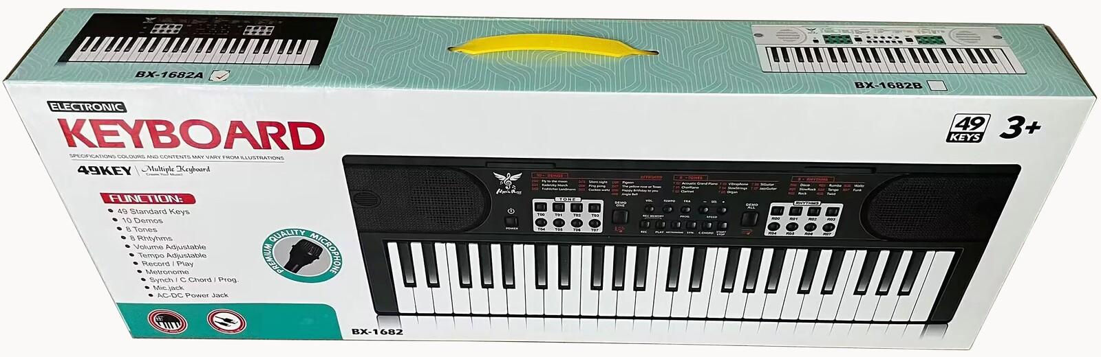 Release the rock star in you with this fantastic 49 key keyboard. Play-along to 10 demos, 100 rhythms or 4 percussions to add more depth to your music. Record your new music, control the volume and tempo and play it back to your friends.*Features:** Ready Ace: Multi Function Electronic Keyboard* 49 Keys* 100 Tones /100 Rhythms / 4 Percussions* Auto bass chord / Single finger chord / Sync / Fill-in* Record / Play / Sustain / Teaching / Program* 2 Digital displays* 10 Demos* 32 Sections of tempo* 16 Levels of control volume* Integrated circuit / Matrix logical circuit* Mic / Power / MP3 / Double stereo speakers* Requires 4 x AA batteries