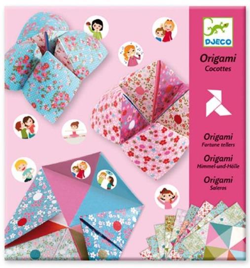 Origami fortune tellers.Pretty patterned paper, simple and clearly explained origami folds and 20 fun forfeits to stick under the flaps. An essential children's game.* Suitable for 6 – 11yrsBox Dimensions: 22 × 23cm