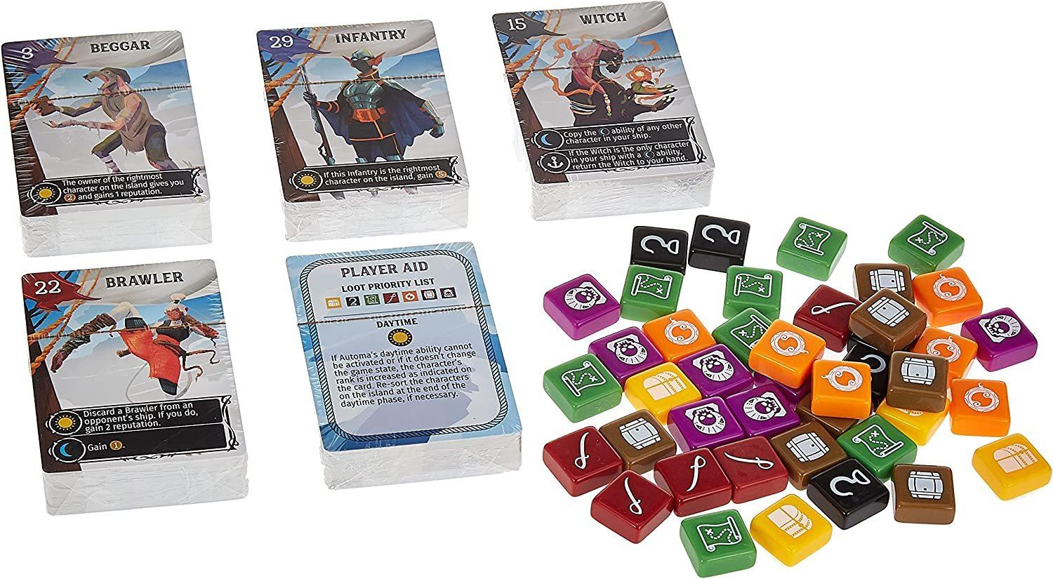 In the world of Galecrest, sky pirates set sail on the winds in search of adventure, treasure, and glory. As an admiral, you command a vast and varied crew … but so do your rivals sailing other ships in the pirate fleet. Each day the fleet lands on a different island where you’ll send a crew member to collect your share of the loot, hoping they’ll return to boost your growing group of characters.Libertalia was originally released in 2012. Ten years later, we’re celebrating the foundations of the original design with a heavily revised and expanded edition that includes all completely new art by Lamaro Smith, 40 characters per player, a reputation system to resolve tiebreakers, premium loot tokens, a robust solo mode, and much more.*The Dice Tower Seal of Approval is a trademark of The Dice Tower, LLC and is used with permission.*