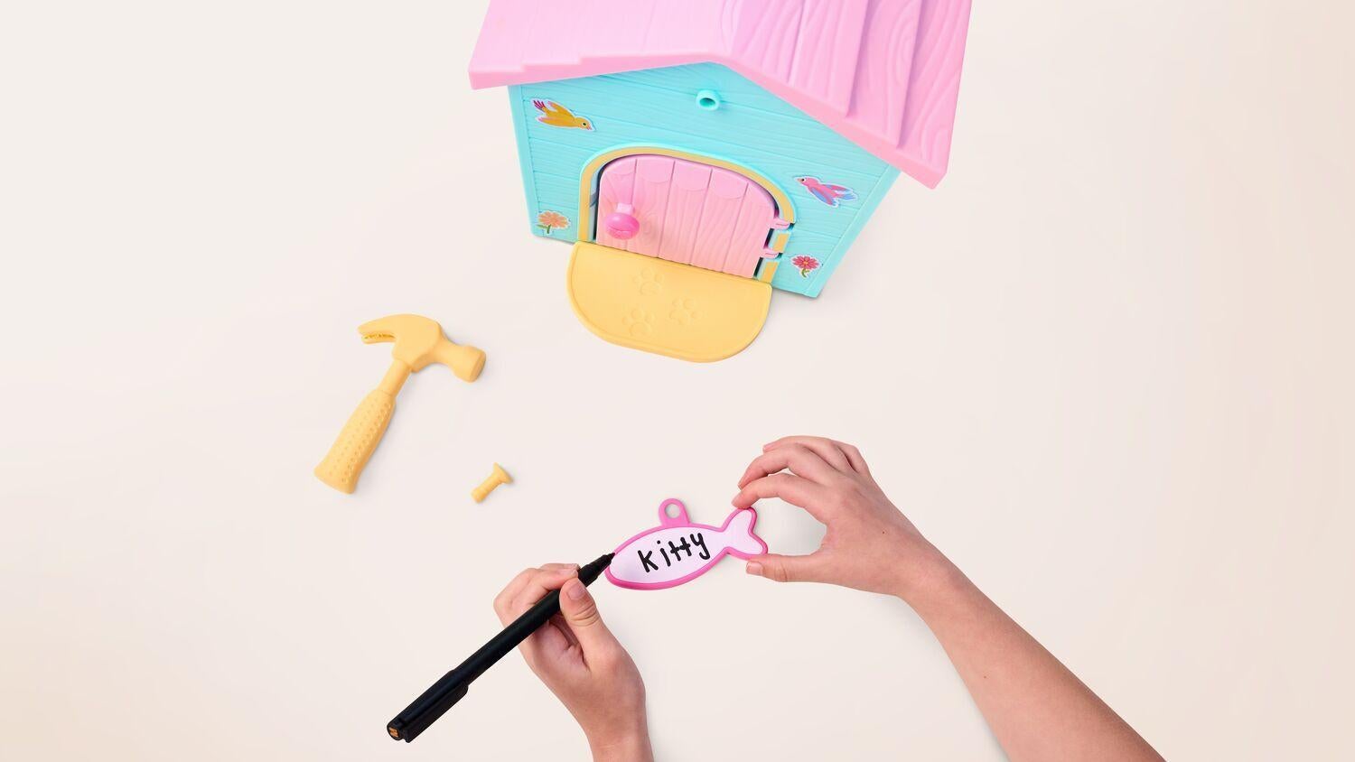 Introducing Little Live Pets My Kitty's Home Minis! Build and decorate the perfect home and reveal 1 of 3 adorable kittens.The playset includes everything you need to create the perfect kitty home. Attach the door, add the welcome mat, decorate with fun stickers, and open the door to reveal your surprise!Make it official by filling in the adoption certificate and enjoy hours of fun as your child plays, feeds, and cares for their new pet kitty.*Features:** BUILD, DECORATE & REVEAL – Complete with everything you need to build and decorate your Kitty's home, before opening the door to reveal your very own adorable kitten!* 1 OF 3 TO REVEAL – There are 3 adorable Kitty's to reveal; a kitty with ginger, brown, or white fur! Which one will you discover?* BUILD & PLAY – Hammer in the nails and name plate, attach the door and doormat, then decorate with your stickers!* Suitable for ages 5+