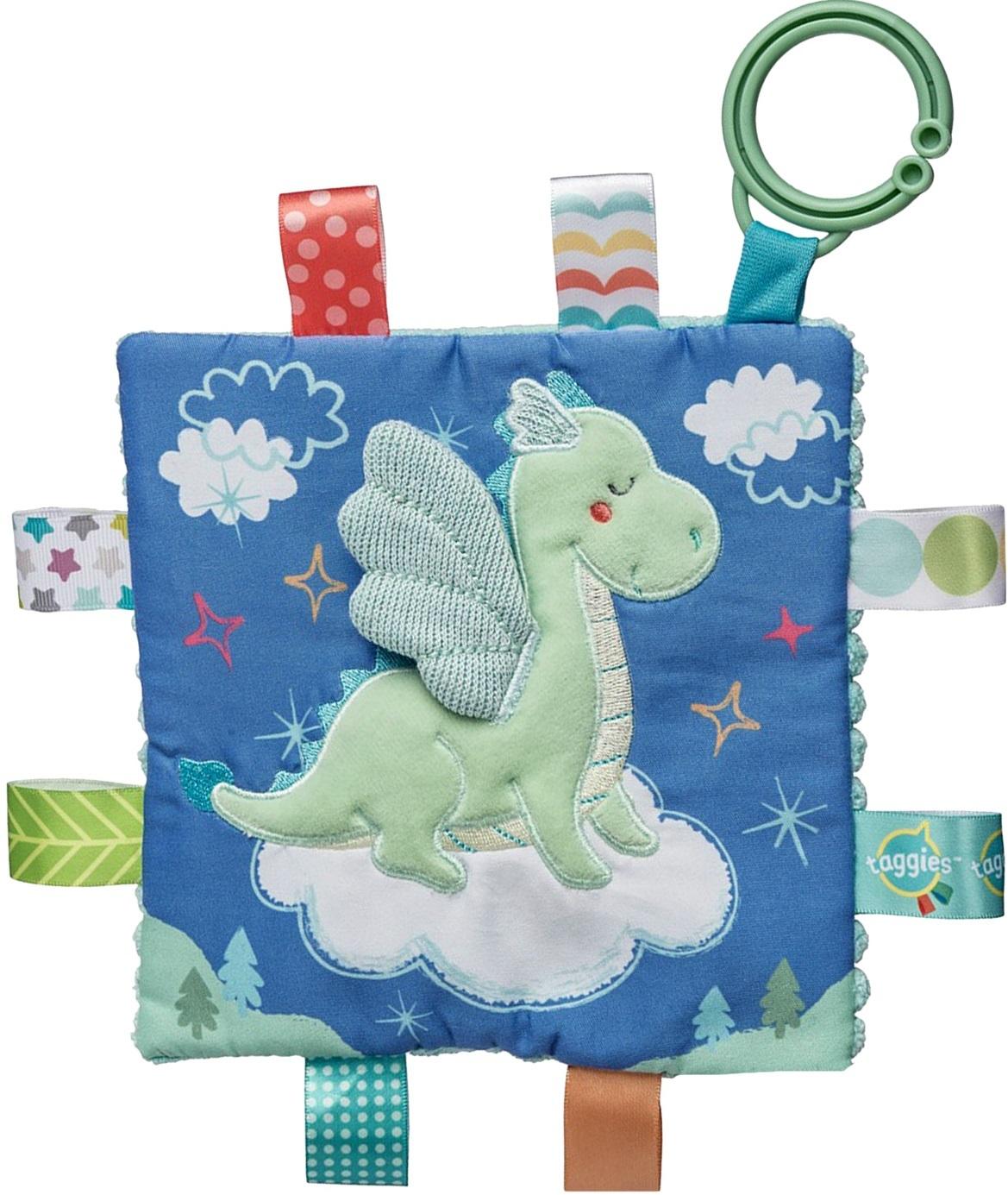 *_Mary Meyer: Taggies Crinkle Me – Drax Dragon_*Introducing Mary Meyer®️, where every cuddly character is crafted with love and designed to spark smiles. Founded more than 90 years ago from a love of all things beautiful and comforting, Mary “Gram” Meyer created a range of luxurious toys and play accessories to become cherished companions on the journey of childhood for little ones. Made with the softest fabrics and filled with squishy goodness, they are perfect for snuggles, play, nap-times, and endless adventures!Taggies was born over a decade ago from a Mum noticing her child's fascination with satin tags, which then blossomed into a world of treasured products that support early sensory development. With little ones mesmerised by the tactile experience of rubbing and touching these soft, satin loops, the Taggies range provides endless comfort, curiosity and stimulation, supporting infants as they learn how to self-soothe.*Features:** Fun character appliques and colorful patterns!* Flexible clip for attaching to strollers!* Crinkle paper and squeeze-activated squeaker inside!* 8 signature Taggies ribbons!* Part soother, part activity toy!* Designed to encourage early sensory development and stimulation!* Machine washable!* Suitable for ages 0+