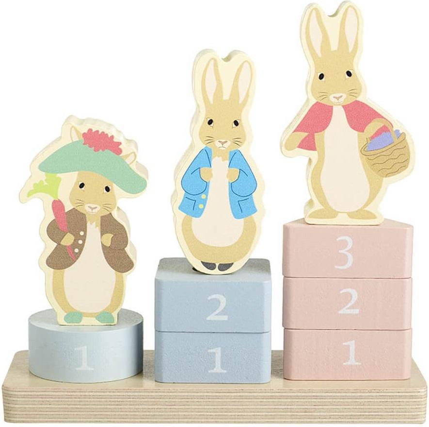 *_Peter Rabbit: Wooden Counting Game_*The 6 pastel-coloured pieces are great for colour recognition, and the wooden characters can also be used for imaginative play. The chunky blocks are the perfect size for little hands to stack, helping to develop key motor skills, as well as learning simple counting and shape recognition. This product is made from FSC® – certified wood.*Features:** Includes 6 pastel-coloured pieces* Helps develop motor skills* Encourages learning counting and number skills* Made from sustainable wood* Suitable for ages 1–3 years