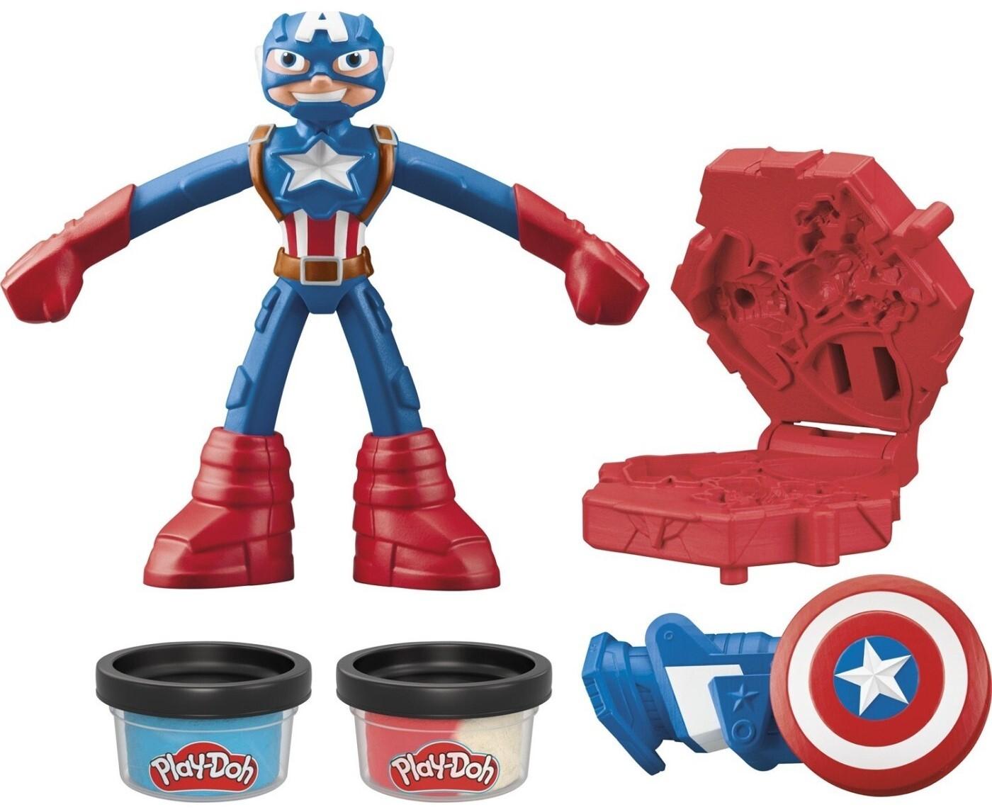 *Play-Doh: Captain America Stamping Shield*Power up kids’ imaginations with this Play-Doh Marvel action figure! The 4-inch (10.16 cm) bendy action figure and Play-Doh accessories let kids play out epic stories. Imagine battling villains with cool tools and 2 cans of modeling compound.This Play-Doh kit is great for kids gifts for fans of super hero figures, arts and crafts activities, and sensory play. PLAY-DOH and HASBRO and all related trademarks and logos are trademarks of Hasbro, Inc. Copyright MARVEL. All trademarks and registered trademarks are the property of their respective owners.*Features:** Super bendy action figure: creative power is in kids' hands with this play-doh set featuring a 4 in (10.16 cm) action figure with wiggly flexible arms and legs* Create play-doh powerups: the play-doh accessories let kids create custom gear for their figures, imagine epic battles, and more* Stand and display the figure: the book-mold doubles as a display stand to keep the pieces together* Includes 2 play-doh cans: these play-doh action figure toys for boys and girls come with two 1 ounce cans of classic play-doh modeling compound* Assemble your play-doh marvel team: look for more marvel play-doh toys like captain america, black panther, iron man, and the hulk (sold separately, subject to availability)*Suitable for Ages 4+*