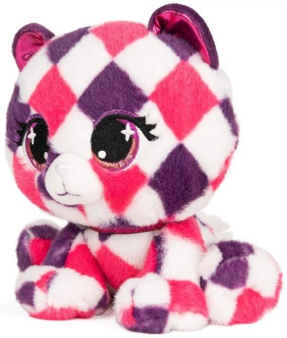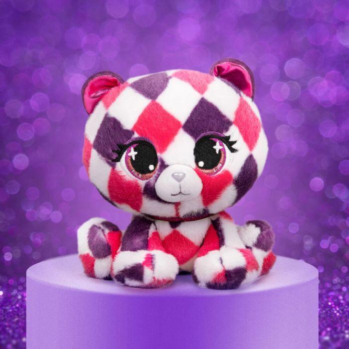 *P.Lushes Pets: Secret Garden – Quinn O'Bearci*LAUGH MORE, WORRY LESS! This harlequin heiress is no joke! Quinn O’Bearci brings an air of wit and wealth to the runway. A brilliant bear, she rocks a diamond pattern in white, royal purple, and bright fuchsia, with a shine in her ears to match her sparkling hot pink eyes and collar. She even coordinates with her favourite flower and a symbol of beauty, the pink peony. Growing up in Versailles, only the best will do – and she wishes the same for you.*Features:** Pink eyes with fuchsia glitter eyeshadow* Fuchsia glitter collar with metallic inner ears* Pink and purple plush with hot pink metallic accents* Perfect gift for fashion lovers* Presented with a branded swing tag with name, style and personality of the character*Suitable for Ages 3+*