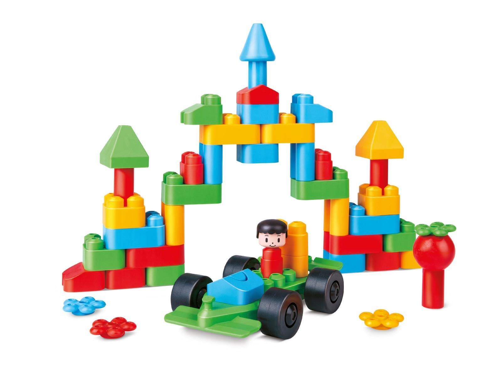 *PolyM: Creative City Kit*Set your imagination free and create a whole city of interesting buildings and structures – using easy-build Poly M blocks. Drive the included car through town. The Creative City Kit includes 50 PolyM bricks, two eye stickers, one pre-built vehicle, build instructions and leaflet.* Recommended for ages 18+ months