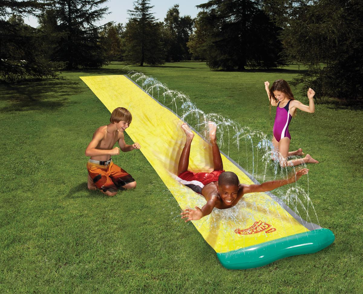 Great for the kids summer outdoor play! Enjoy the sunshine and giggles with this fun Slip 'N Slide Surf Rider!!It's an awesome, action-packed 16ft water slide that comes with 2 slide anchors, 2 repair patches!Ages 5–12years