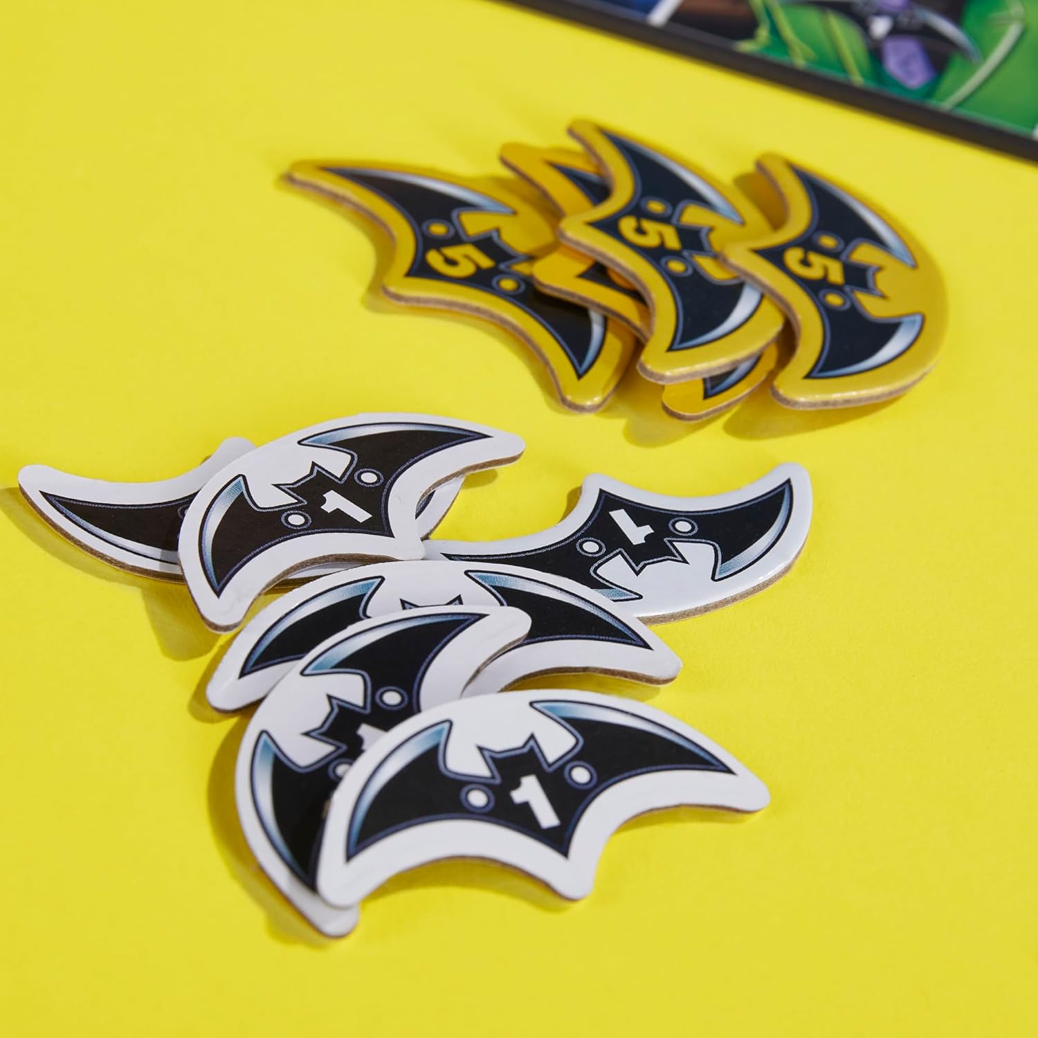 Be the hero Gotham City needs! In the Monopoly Batman Edition board game, play as a member of the bat-family and patrol the night, stopping the many notorious villains who have overrun Gotham City. This fun kids board game features Batman artwork, characters, and themes inspired by the Batman comics. In this edition, villains replace properties, and cardboard batarangs replace Monopoly money. Travel the board using batarangs to capture villains, collect their Calling Cards, and return them to Arkham Asylum.