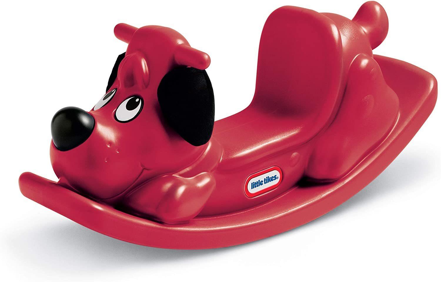 *Little Tikes: Rocking Puppy – Red*This puppy has soft fabric ears, a cute nose and large eyes with high-back seat, easy grip handles, textured seat and foot area to reduce slipping. The classic rocking horse with a new twist – a rocking puppy! This fun red puppy makes for a rocking good time! Just the right size for your growing toddler. An ideal toy for teaching balance and coordination.*Features:** Smoothly rounded with a high seat back* Measures approximately 33.'' x 10" x 17.5''* Perfect size for indoor or outdoor use* Maximum weight limit: up to 50lbs.* Low saddle designed for stability* Comes fully assembled* Easy-grip handles*Suitable for ages 1 & up*