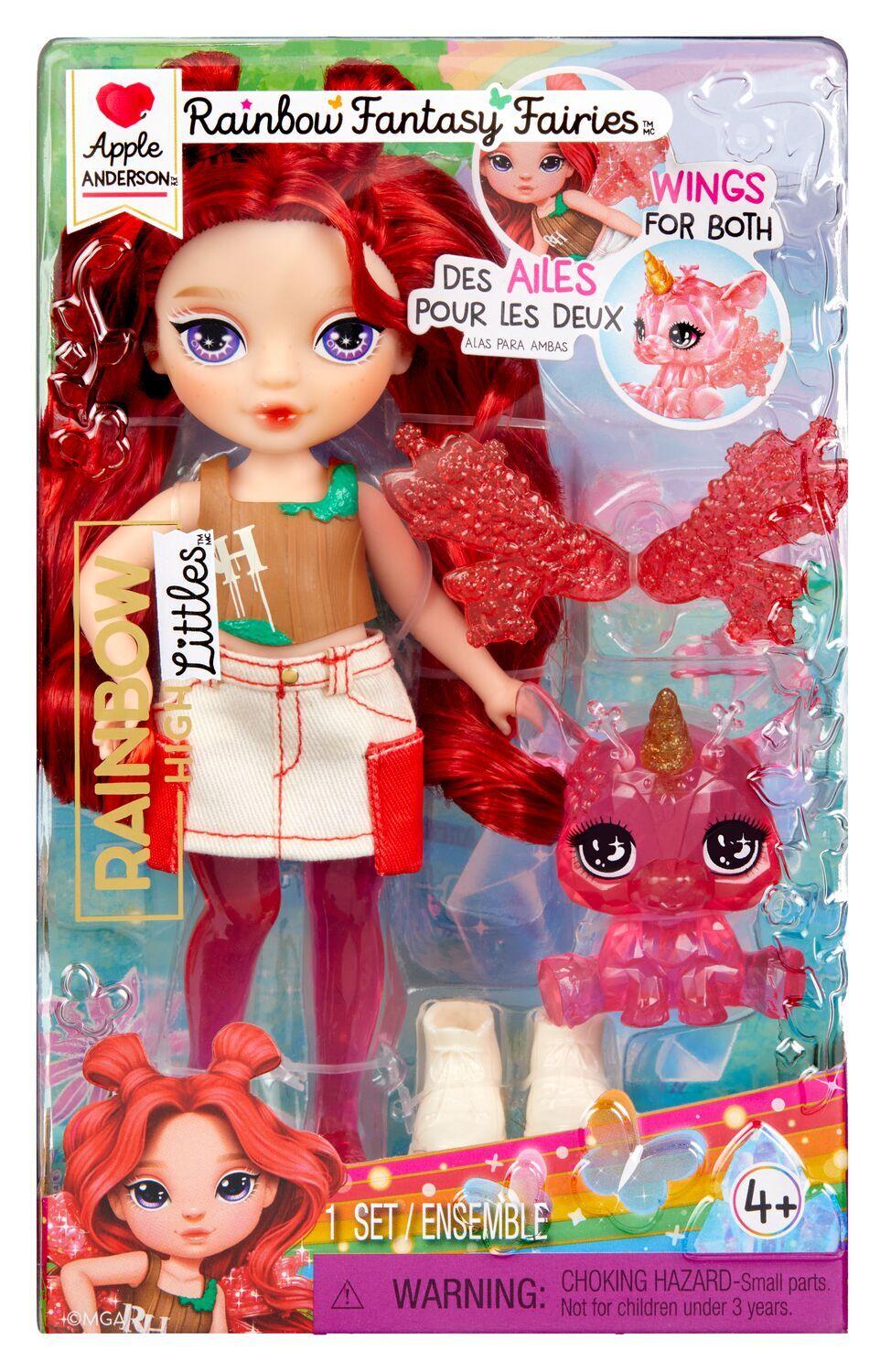 Rainbow High Littles are stepping into a magical world alongside their big sisters—and now, they have wings!These adorable Littles feature interchangeable fantasy fairy wings that can also be swapped with their enchanted pets. Each 5.5” poseable doll comes with a removable outfit, stylish shoes, brushable hair, and mesmerizing clear legs.Collect the rainbow; Astrid dazzles in rainbow with her Butterfly, Apple shines in red with her Deer, Emerald sparkles in green with her Dragon, Sapphire stuns in blue with her Dog, and Opal enchants in rainbow with her Owl.*Features:** FANTASY OWL PET. Comes with a super cute magical flying pet whose wings are interchangeable with her.* ADORABLE RAINBOW FEATURES. Each doll has their own unique rainbow style; dressed in a cute, molded top and soft pants. Has long brushable rainbow hair. And her magical clear legs are tinted with her signature rainbow color.* SMALL DOLL THAT’S POSEABLE. She is the perfect height for her age, 5.5”. And because she is articulated at the head, shoulders and legs, she is so easy to pose.* WHAT'S INCLUDED. 5.5” Small poseable fairy doll, removable outfit & shoes, magical flying pet with horn. And the fairy comes with fairy wings that are interchangeable between the doll and her magical flying pet.* COLLECT THEM ALL. Astrid, Apple, Emerald, Sapphire, Amethyst and Opal.* Suitable for ages 4+