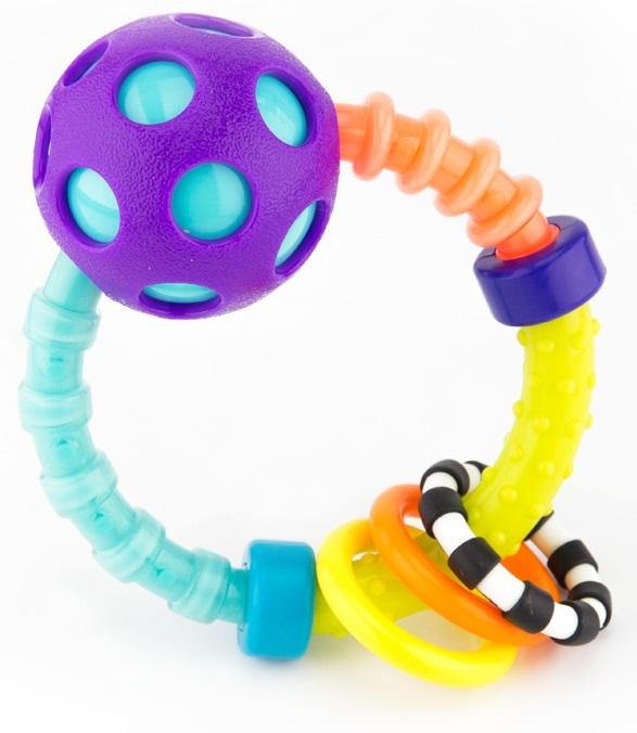 *_Sassy Baby: First Bend and Flex Rattle_*Whether at home or on the go, keep your little one entertained with the Sassy My First Bend and Flex Rattle Set. Perfectly sized for little hands, the rattle and ring duo feature a mix of squishy and textured surfaces to stimulate baby's senses.Click-clack rings and a polka dot rattle ball help baby learn cause & effect as they shake the rattles.
