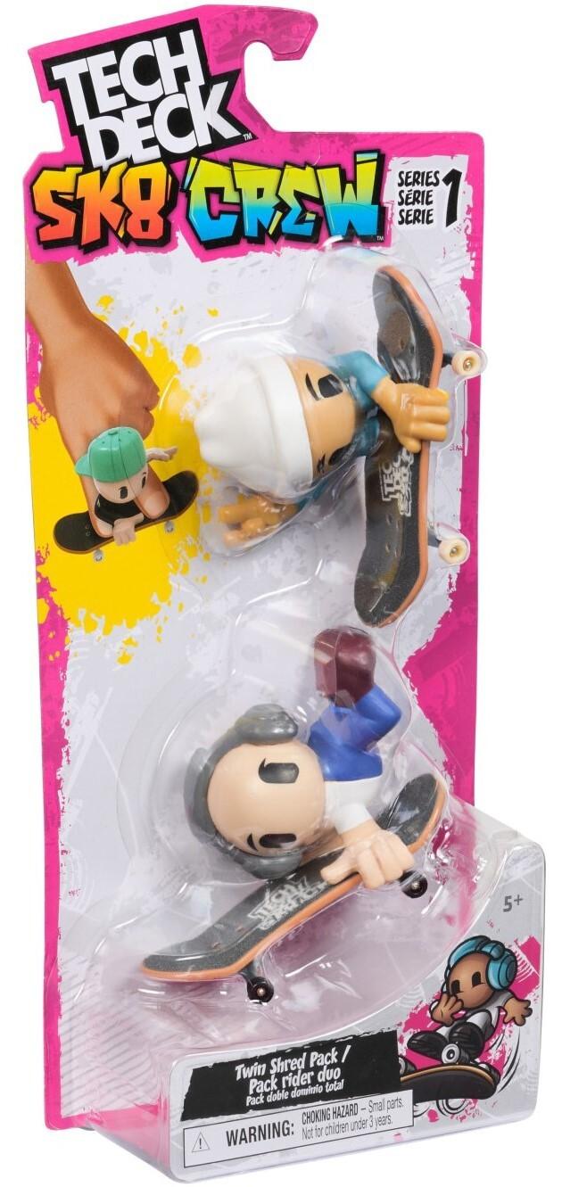 *Tech Deck: Sk8 Crew – Twin Shred Pack #2*Learn how to fingerboard with the all new, 2-Pack Tech Deck Sk8 Crew. Each pack comes with two Tech Deck boards, two Sk8 Crew members and two sticker sheets to get started. With eight Sk8 Crew figures to collect, improve your grip to master moves like ollies and power slides. Snap the skate crew member onto the skateboard deck and start practicing the right techniques. Scan the QR code for video tutorials to study your favorite moves. Take your Sk8 Crew on an adventure with Ultra Sk8 Bus for bigger tricks and storage for the Sk8 Crew (sold separately).Ride and grind your new finger skateboards on the X-Connect series. Build out the Quarter Bowl Ruckus or Pyramid Shredder 2.0 ramp sets (each sold separately) for you to shred your skateboard decks on your favorite fingerboard obstacles like the Tech Deck Skatepark. There are a ton of Decks, toy figures & playsets to collect! Ride, flip, and grind with Tech Deck fingerboards and BMX from real skate companies! Tech Deck mini skateboards for fingers and ramp sets make the perfect gift for girls toys age 6–8 who love small toys cool toys and hot toys. Are you looking for 3 year old boy toys consider Tech Decks as an alternative to toy cars as a boys toys age 6–8 item. Start small, go big and explore the world of finger boarding with Tech Deck Sk8 Crew 2-Pack Includes: 2 Sk8 Crew Members, 2 Tech Deck Fingerboards*Features:** 2-Pack Sk8 Crew for learning finger skateboarding* Designed for young learners, master real tricks* Snap figures to fingerboards for ollies and slides* Collect all 8 Sk8 Crew members* Compatible with all Tech Deck fingerboards* Scan QR for video tutorials on tricks* Remove figures to become a fingerboard legend*Suitable for Ages 5+*