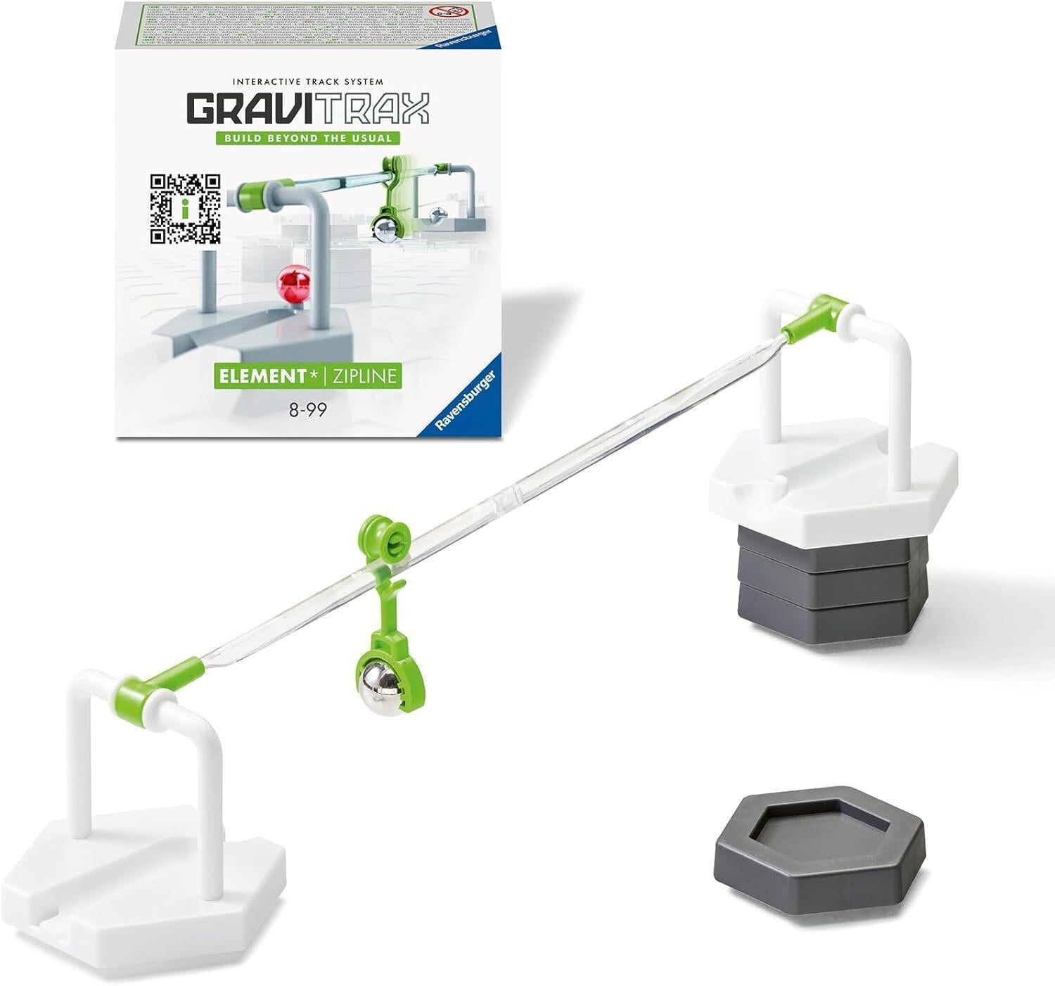 *GraviTrax 4th Generation Add on: Zip along!**GraviTrax* is an interactive marble run that allows players to design and build tracks, whilst experimenting with gravity, magnetism, and kinetics to explore endless possibilities and infinite creativity.The Zipline connects track sections to overcome long distances and varying elevations. Combine the Zipline with the GraviTrax Starter Set (sold separately) for spectacular gliding action. How far will your marbles go when connected across the tracks via Zipline?*Features:** Develop Critical Skills* GraviTrax is an electronic-free modular interactive track system* It comes with detailed instructions so you can start building and playing in minutes.*Game Components:** Instructions* 1 zipline set* 1 long rail* 2 medium rails* 3 short rails*Suitable for ages 8 & up*