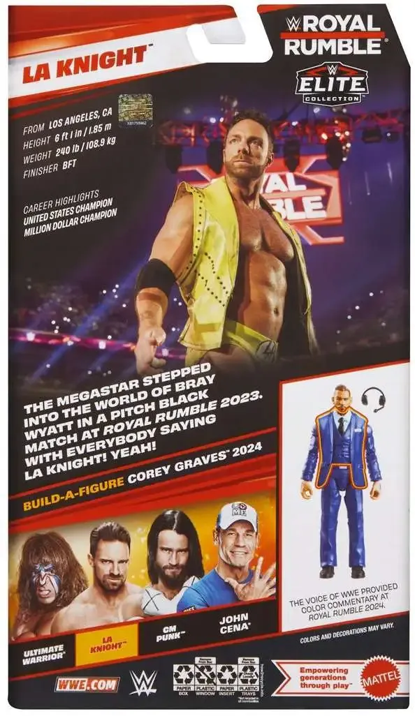 WWE Elite Collection Premium Live Event action figures celebrate WWE Superstars from their biggest moments! Play out WrestleMania, Royal Rumble, SummerSlam, and Survivor Series moments from iconic WWE Superstars.Each figure comes with iconic accessories and pieces to build a figure! Make your collection elite! Each sold separately, subject to availability. Colours and decorations may vary.*Features:** WWE Elite Figure recreates moments from Premium Live Events* Highly detailed TrueFX technology for life-like faces* Create signature poses and moves with deluxe articulation* Includes interchangeable hands and accessories* Complete the set to build another WWE Elite figure*Suitable for Ages 8+*