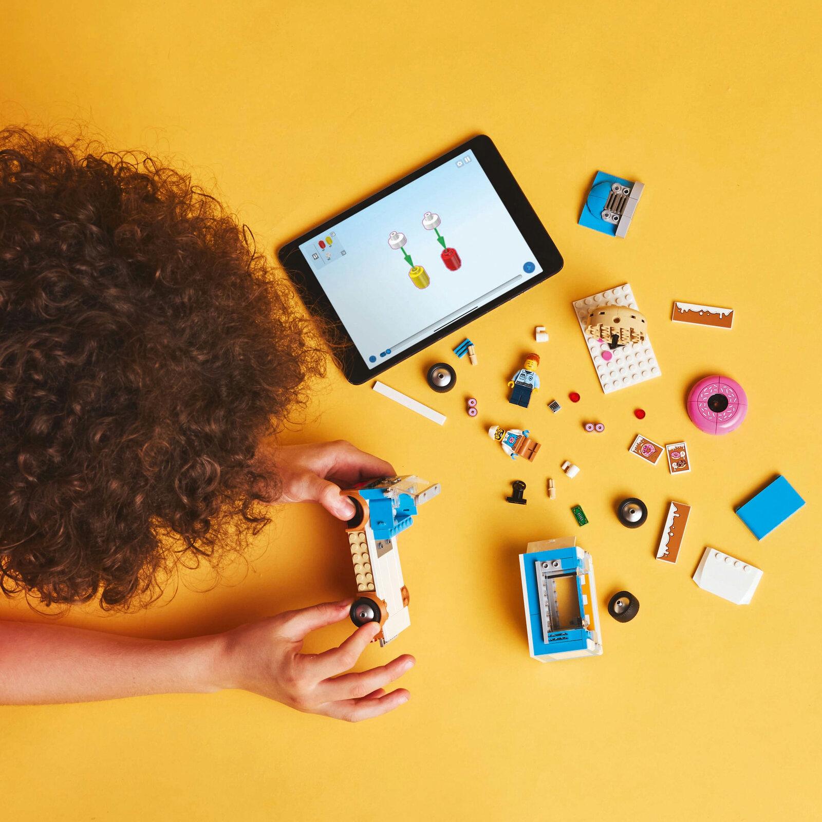 *Toy doughnut truck vehicle playset*Introducing the ultimate vehicle toy for sweet-treat fans aged 5 and over. The LEGO City Doughnut Truck playset (60452) comes with a delicious icing decoration, giant roof doughnut and an accessible prep area with a coffee machine and cash register. Kids can serve up tasty doughnuts and drinks from the service window and detach the kiosk for added play options. Just add the seller and customer minifigures and let the fun begin.You’ll find building instructions for the mobile LEGO doughnut shop in the box. Or you can visit the LEGO Builder app where kids can explore and save sets, track their own building progress, and zoom in and rotate to view models from all angles as they build. LEGO City Great Vehicles playsets deliver feature-rich land, air and water toys for imaginative play without limits. Kids can add this toy doughnut truck to other sets (sold separately) from the LEGO City range for even bigger adventures!*Features:** LEGO City Doughnut Truck vehicle toy for ages 5 and over* Toy doughnut truck playset with a detachable kiosk and 2 minifigures* Mobile doughnut stand with prep area and serving window for imaginative play* Toy accessories include a coffee machine, cash register, 4 doughnuts and 2 mugs* A fun doughnut-themed gift or any-day surprise for kids aged 5 and over* Combine this LEGO City playset with others (sold separately) from the range* LEGO City is a place where kids can set their limitless imaginations free* This truck in this 196-piece vehicle playset measures over 13 cm (5 in.) long*Specifics:**Item*: 60452*Pieces*: 196*Ages*: 5+