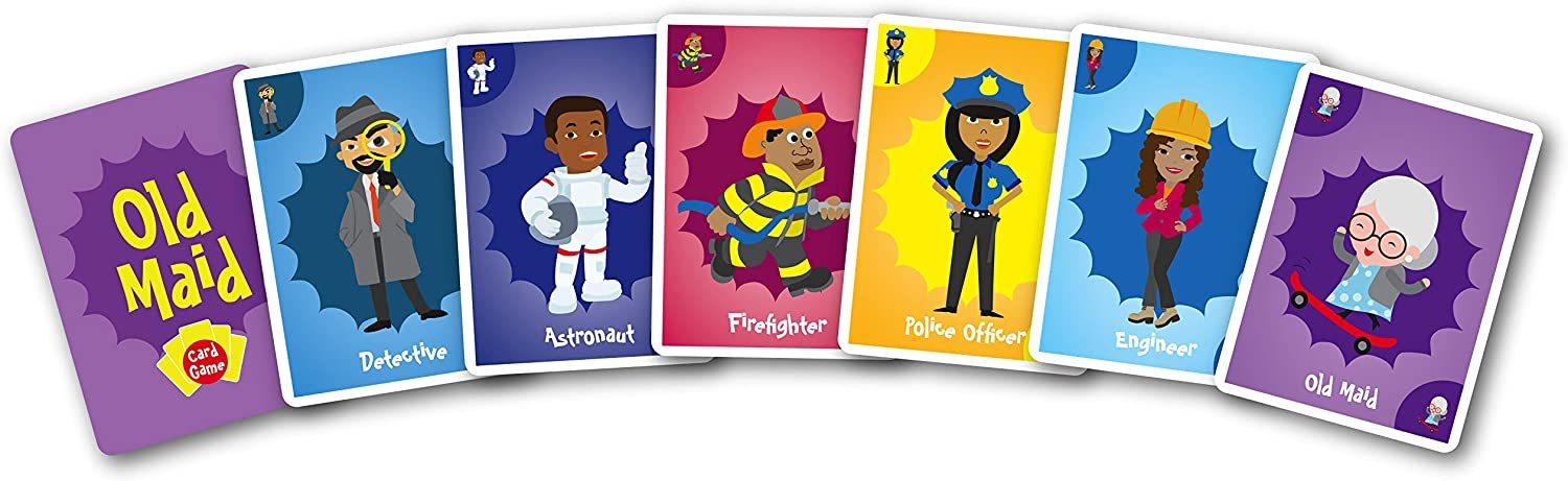 Watch out for the Old Maid! Take turns picking cards from other players, but don’t let your friends or family see your hand. To win, collect the most pairs, without getting stuck with the Old Maid. We’re proud to offer a new take on Old Maid, with women and people of color well represented in diverse occupations.Contains 37 cards and instructions.