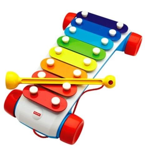 *Fisher-Price: Classic Xylophone*The Fisher-Price Classic Xylophone pull toy has 8 colourful keys to encourage early music-making creativity, helping toddlers develop a sense of accomplishment. And as their musical abilities grow, mini maestros can follow the colours to create a real song. The mallet’s attached so it never gets lost. And it’s on wheels so toddlers can walk and pull their musical instrument wherever they go.*Features:** Classic pull-along toy for mini musicians!* Toddlers can use the tethered mallet to tap on the 8 colorful keys for fun sounds* Pull string and easy-rolling wheels let toddlers pull it along anywhere* Helps develop hand-eye coordination and gross motor skills* For toddlers ages 18 months and older*Ages 18M+*