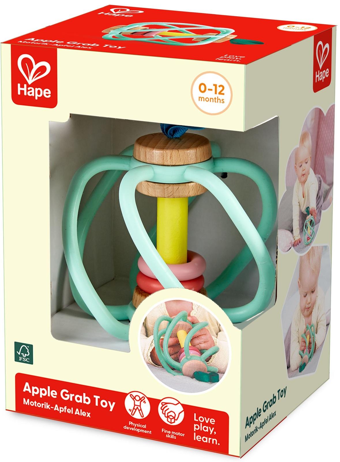 This cute apple grab toy is a great way to keep your little ones entertained.Easy to attach to a crib or stroller and made from smooth wood and soft silicone bars which are 100% safe to chew!* Age: 3 months and up* Product Dimensions(H): 10 cm* Approx package dimensions: 12 × 20 × 12 cm* Keep your little one amused and happy* Gentle rattling sound* FSC Certified* Silicone soft and safe to chew* Promotes Motor Skills* Easy to attach to a crib or stroller* Made from smooth wood and soft silicone bars* Washable