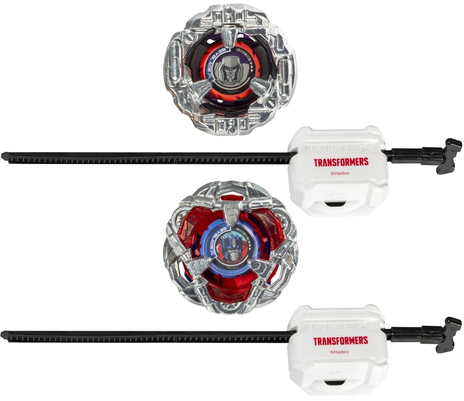 *Experience the thrill of the next generation of Beyblade stadiums, launchers and tops: Beyblade X!*Beyblade X Transformers Collab Optimus Prime 4–60P and Megatron 4–80B Multipack Set which includes 2 right-spinning tops and 2 launchers (Beystadium required, sold separately). Launch right into battle or reconfigure the interchangeable blade, ratchet, and bit of tops in this Transformers Collab Multipack with those of other Beyblade X tops (sold separately) to create your own unsurpassable Bey. Beyblade X features the X-Celerator Gear System innovation to level-up your game.When the gear of a Beyblade X top engages the rail of the Beystadium arena, it can super-accelerate into an Xtreme Dash rocketing it around the stadium. Bladers launch their tops into fierce clashes against their opponent’s scoring points with each spin – first to score 4 points wins. Hasbro Beyblade toys with authentic Takara Tomy die-cast metal tops make great kids gifts for boys and girls ages 8 and up.*Features:** Assemble your top, load your launcher, and 3–2–1 Let it rip!* Beyblade X brings the thrill of competition with a fast-paced, spinning-top battle game.* Beyblade X tops riding the rail allow for breathtaking bursts and colossal crashes.* The interchangeable layers of Beyblade X tops assemble and reassemble quickly.* Includes 2 Takara Tomy-designed right-spin tops with authentic die-cast metal parts.* Compete in the Beyblade X app to unleash your tops in a virtual battle!* When the gears of the bit and stadium X-Celerator Rail meet, tops rocket forward in an Xtreme Dash reaching intense speeds (Only compatible with the Beyblade X System).*Specifications:* Optimus Prime 4–60P* *Blade:* Optimus Prime* *Ratchet:* 4–60* *Bit:* P* *Type:* Balance* *Spin:* Right*Specifications:* Megatron 4–80B* *Blade:* Megatron* *Ratchet:* 4–80* *Bit:* B* *Type:* Stamina* *Spin:* Right*Includes:** 1 x Optimus Prime 4–60P* 1 x Megatron 4–80B* 2 x Launchers*Suitable for ages 8 & up**Requires Beyblade X Beystadium to play.**Warning: Only use BEYBLADE X tops with a BEYBLADE X Beystadium.*DO NOT LEAN OVER STADIUM when tops are in play. Do not use stadium on tables or other elevated surfaces. Tops may bounce up and hit eye and face.