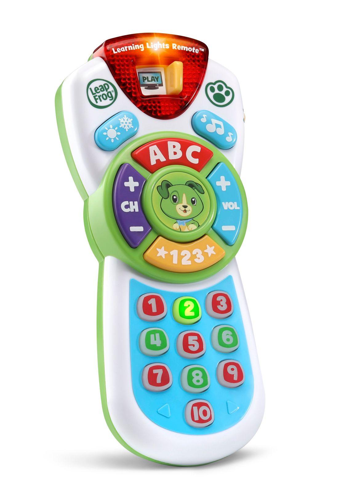 *Keep little ones entertained in a big way with a pretend-play remote that introduces numbers, shapes, first words and more!*With more than 65 songs, tunes and learning responses from an irresistible light-up screen, the LeapFrog learning lights remote helps children ages 6 to 36 months tune into early learning concepts as they imitate mom and dad.With the LeapFrog learning lights remote, little ones can press up, down, left or right to hear counting and numbers songs, play a shapes game with the delightful puppy pal Scout, or Count along with him. They can press the channel buttons to hear how Scout has fun in all kinds of weather or to help him Count shapes in his garden. The number buttons prompt a counting activity, which encourages little ones to Count bright-colored shapes that light up on the screen.Lovable Scout is always at their fingertips to entertain, encourage and help children explore.*Features:** Two modes include: Play and Learn.* Teaches number quantities with 10 light up number buttons.* Explore different pretend TV channels with Scout.* Press the music button to listen to number songs.* Two interactive number games.*Suitable for ages 6m & up*