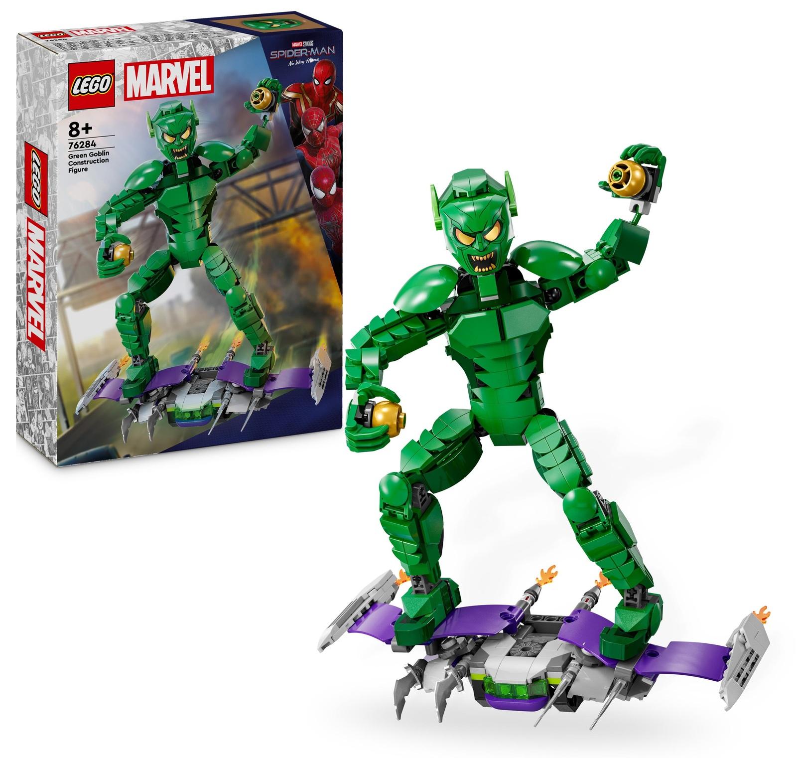 *Green Goblin posable construction figure with glider and pumpkin bombs – authentically detailed buildable toy from the Marvel Spider-Man universe.*Put Marvel movie adventures into kids’ hands with the posable LEGO® Marvel Green Goblin Construction Figure (76284) – the ultimate Spider-Man villain-building toy for kids aged 8 and up. This collectible Marvel villain-building toy is fun for young Super Heroes to build, play with and display. Movable shoulder, arm, hip and leg joints let kids create cool action poses as they take on exciting missions.The authentically detailed Green Goblin comes with 2 pumpkin bombs and his famous glider. The bombs can fit into the character’s hand and in the storage space at the rear of the glider. Ideal for independent role-play. For added digital fun, builders can zoom in, rotate sets in 3D and track their progress using the fun, intuitive LEGO Builder app.*Features:** Super villain building toy for Super Hero kids* Movable shoulder, arm, hip and leg joints enable kids to create cool action poses* The Green Goblin can attach to his glider and hold 2 pumpkin bombs* The bombs also fit into the storage space at the rear of the glider* This collectible Marvel villain construction figure is fun for young Super Heroes* Give this buildable villain to fans of Super Hero action from the Spider-Man Universe* The construction figure in this 471-piece set stands over 9.5 in. (24 cm) tall* big enough for epic action, small enough for kids to take wherever they go*Specifics:**Item:* 76284*Pieces:* 471*Ages:* 8+