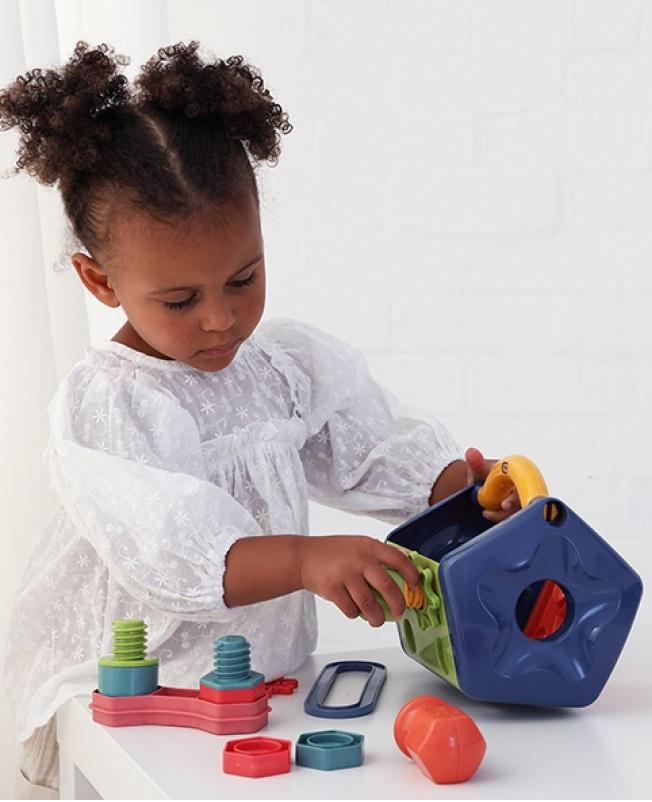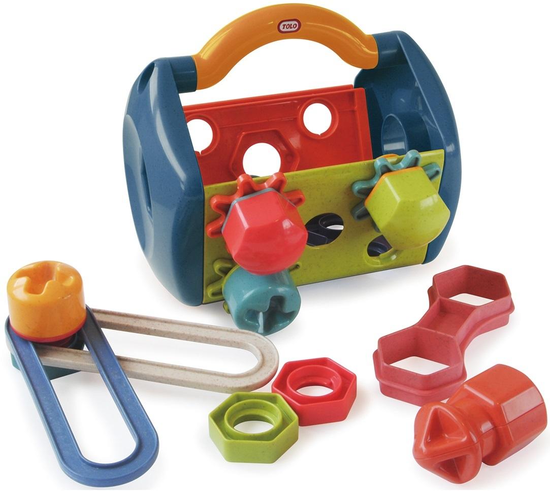 *Tolo: Tool Box*Teach the difference between nuts,bolts and screws. Show how the spanner and screwdriver are used. Connect some bolts and nuts to the side panels for practice. Connect a nut and bolt on the connecters and show how they can slide along it.*Features:** The gears can be connected together on the side panel of the toolbox. All three can be used to form a diagonal line.* Let your little engineers show off their creations with the Tolo Tool box!* Includes 14 pieces of tools including a screwdriver, spanner, long oval connectors, cross head screws, bolts nuts and gears.* A sturdy handle for your little one to transport all the tools.*Specifications:** *Brand:* Tolo* *Suitable age:* 12+ months* *Size:* 17 × 11 × 17 cm (L/W/H)