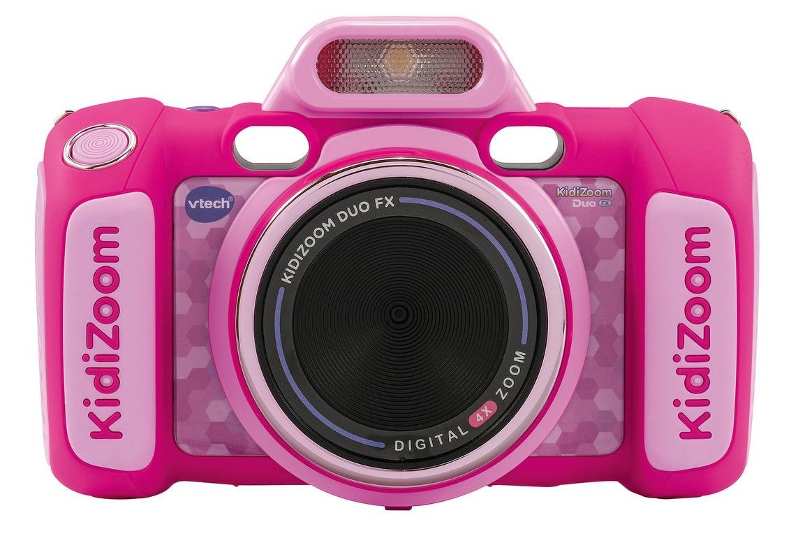 *The next gen of the beloved VTech Kidizoom Duo Camera is here! Unleash your creativity with the new Kidizoom Duo FX!*The next gen of the beloved VTech Kidizoom Duo Camera is here! Unleash your creativity with the new Kidizoom Duo FX. You can use the high-resolution 8 megapixel\* camera to take great shots and the 2 megapixel rear-facing camera for fun selfies. Create awesome photos and videos with live AR face filters and fun photo effects! Includes 5 games to play on your own or with friends. Record your voice and apply funny effects to it. Other features include Chin Puppet Theatre, Cartoon Studio, panorama photos and MP3 music player. Parental controls allow adult to switch of games and set time limits. Supports MicroSD cards up to 32GB (not included). \*Interpolated from 5MP sensor resolution.*Features:** 80+ effects to apply to your photos and videos* Record videos with Live AR Avatar Filters and the Chin Puppet Theatre* 5 fun games to play on your own or with friends* Dual 8MP\* front and 2MP selfie cameras* Built-in auto flash, 2.4" screen, panorama photos, parental control* Supports MicroSD Cards up to 32GB (not included)* 4 x AA Batteries Required*Suitable for ages 6 & up*