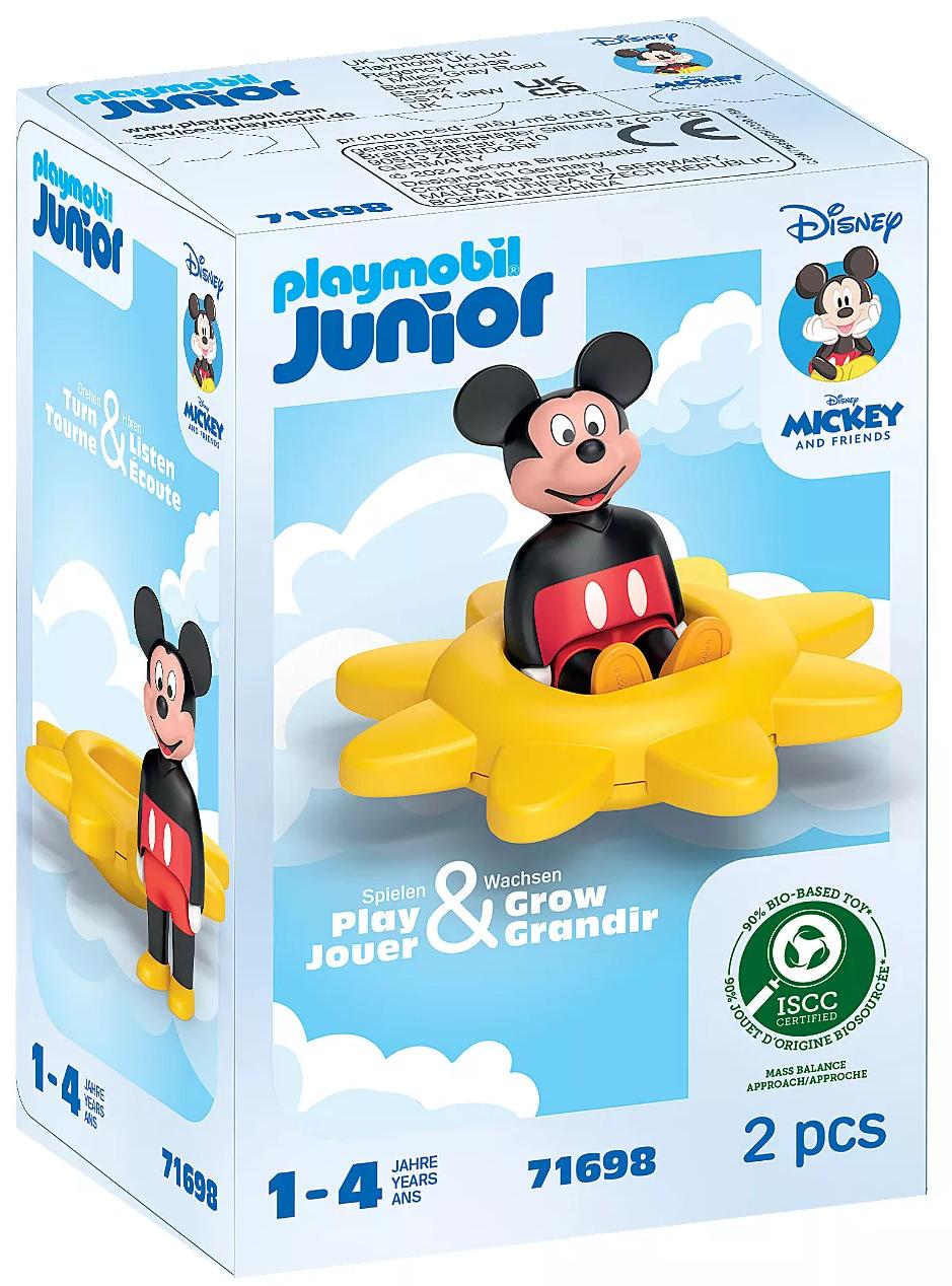 *Playmobil: Junior & Disney – Mickey's Spinning Sun (71698)*The starter set for the curious featuring Disney's Mickey Mouse and his spinning sun! With this Disney-inspired set, your child delves into the world of Playmobil JUNIOR and discovers how effortlessly figures and objects can be combined. Your child can try out the rattling sounds of the spinning sun or set it spinning. Who can get Mickey and his sun spinning the fastest?*Contents:** Figures: 1 Mickey Mouse* Accessories: 1 sun spinner with rattle function*Suitable for Ages 1+*