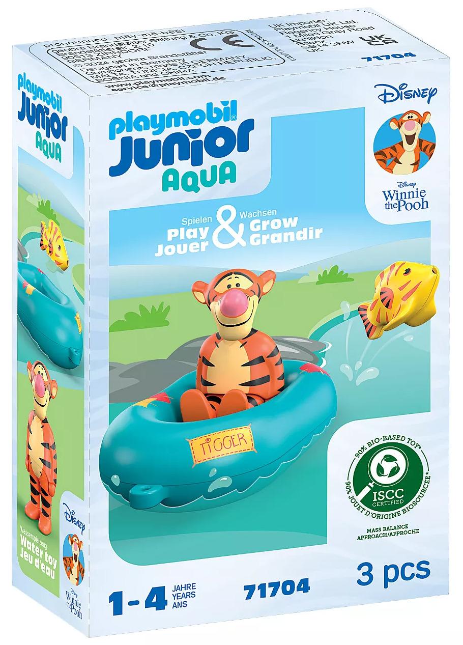 *Playmobil: Junior & Disney – Tigger's Rubber Boat Ride (71704)*Exciting water fun guaranteed! With the Rubber Boat Ride bath set inspired by Disney's Tigger, playful water exploration becomes a breeze. Your child develops their fine motor skills while having a blast in the tub, and they become more comfortable in the water.Let your child embark on grand adventures with Tigger! Quickly place Tigger in the boat and watch as he floats down the river. Suddenly, the funny tiger fish appears – who will catch it first?*Contents:** Figures: 1 Tigger* Animals: 1 tiger fish* Accessories: 1 rubber boat*Suitable for Ages 1+*