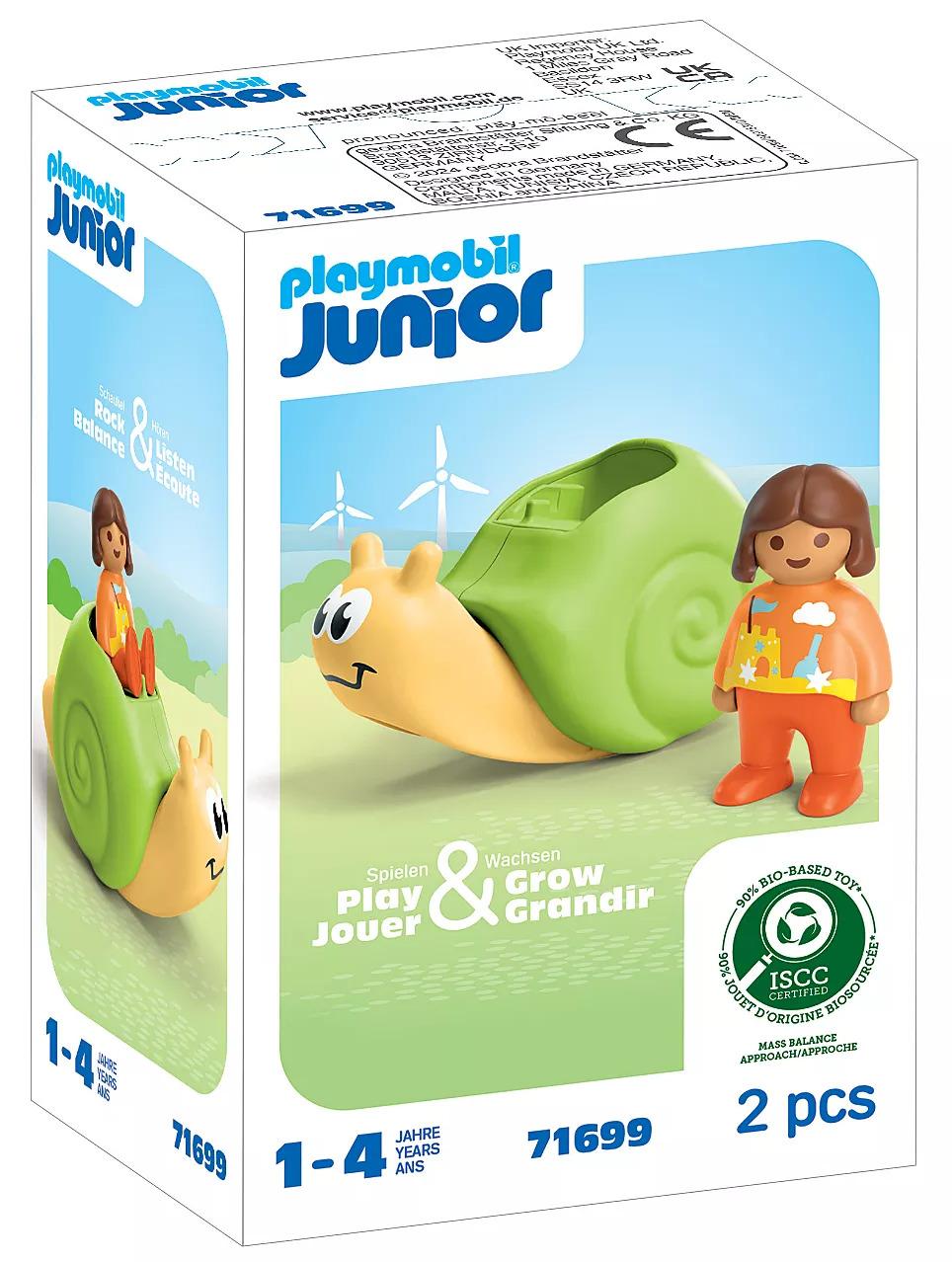 *Playmobil: Junior – Rocking Snail with Rattle (71699)*Ready for a cheerful adventure with the adorable rocking snail? This colourful snail in a playful design will captivate your child and encourage play.The integrated rattle sound sparks the curiosity of little explorers and adds extra fun to rocking. Your child can place the figure and happily rock it back and forth, while also playfully training their fine motor skills.*Contents:** Figures: 1 girl* Animals: 1 rocking snail*Suitable for Ages 1+*