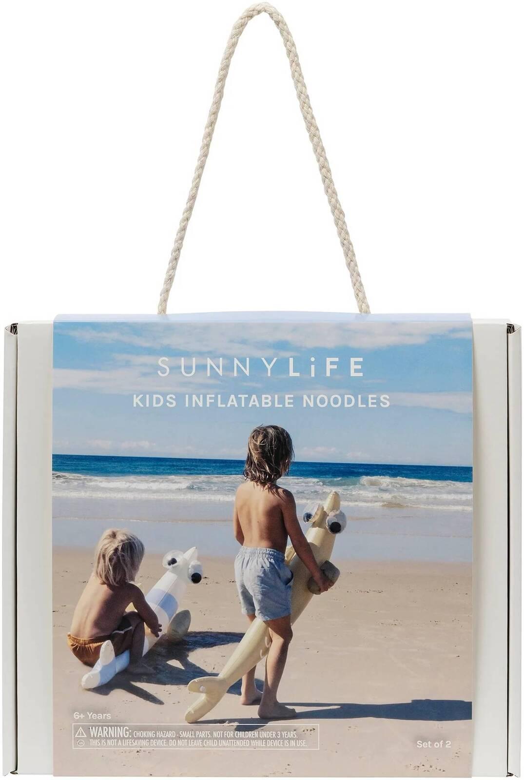 *Summer is more fun with SUNNYLiFE!*Just add water and bring playtime to life. The Kids Inflatable Noodles are designed to capture the imaginations of young children.*Features:** Max. weight 40kg / 88lbs per noodle.* Set includes 2× inflatable wands.* Internal multi colour glitter.* Special valve designed to prevent glitter from escaping inflatable.* Includes repair patch in case of punctures.* Made from durable, non-toxic Phthalate free PVC.* This is not a lifesaving device, use under constant competent supervision. Our floats and inflatables carry important safety labels that may not be shown in all photography.*Specifications:** Product Dimensions: L104 x W48 x H11 cm* Package Dimensions: L25 x W22 x H6 cm* Package Weight: 0.37 kg* Materials: PVC