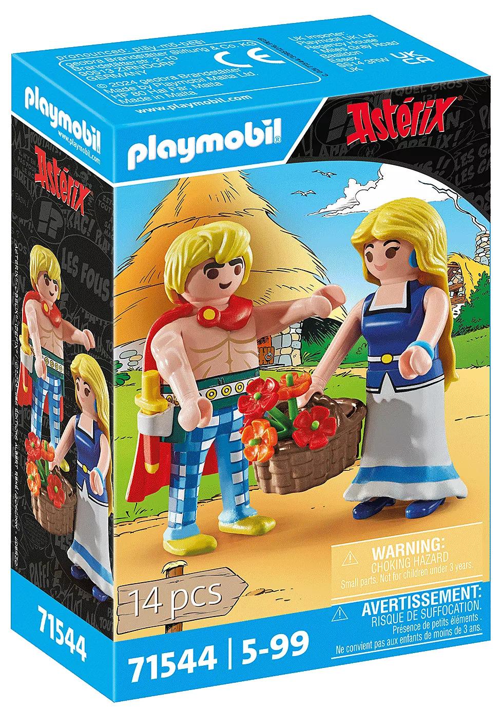 *Playmobil: Asterix – Tragicomix and Panacea (71544)*Asterix: Tragicomix and Panacea – the love-struck couple from the album “Asterix the Legionary”.Meet the lovely Panacea and her fiancé Tragicomix from the comic “Asterix the Legionary” and embark on exciting adventures. Panacea is recognized by her long blonde hair, a white skirt with a blue blouse, and earrings. Obelix is hopelessly in love with her, but Panacea's heart belongs solely to her fiancé Tragicomix. With lovingly designed figures, PLAYMOBIL brings the vast Asterix universe into the playroom. The detailed play figures inspire fans aged 5 and up to recreate their favorite scenes from the comics and invent new stories.*Contents:** Figures: Tragicomix, Panacea* Accessories: 1 cloak, 1 sword, 1 basket, 1 bouquet of flowers, 1 bracelet*Suitable for Ages 5+*