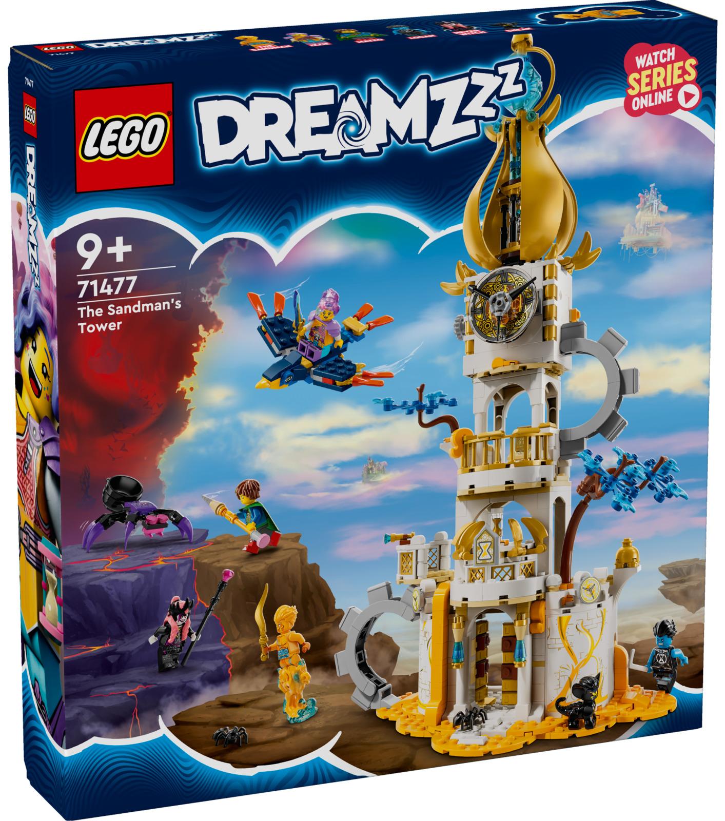 *Creative kids help defend The Sandman’s Tower from the Never Witch in a LEGO® DREAMZzz™ building set with 3 minifigures, which makes a unique gift.*Let kids aged 9+ discover The Sandman’s Tower with this LEGO® DREAMZzz™ castle toy (71477). Based on the exciting TV show, this building set allows kids to help hero figures defend the Sandman’s magical home from the evil Never Witch and her minion Sneak! This fantasy toy encourages kids to unleash their imaginations by offering them 2 building options. They can choose to transform it into an imposing fortress or an elegant tower toy. In fortress mode, the model has an hourglass cannon, and in tower mode the model has a spinning top.Both building options include exciting accessories such as a weapons rack, a potion station and a magical book, plus fantasy animal figures, including a posable toy bird and spider toy. Izzie, Mateo, Logan, the Sandman and the villainous Never Witch, plus a figure of Sneak, bring the castle playset to life so kids can build their own dream tower.*Features:** Transform the castle playset into an imposing fortress or an elegant tower toy* Includes Izzie, Mateo, Logan, the Sandman* Plus the villainous Never Witch and a figure of minion Sneak* The building set includes a spider toy and bird toy, both of which are posable* Explore other fantasy toys for boys and girls in the LEGO DREAMZzz range* Measures 47 × 14 × 25 cm*Specifics:**Item:* 71477*Pieces:* 723*Ages:* 9+
