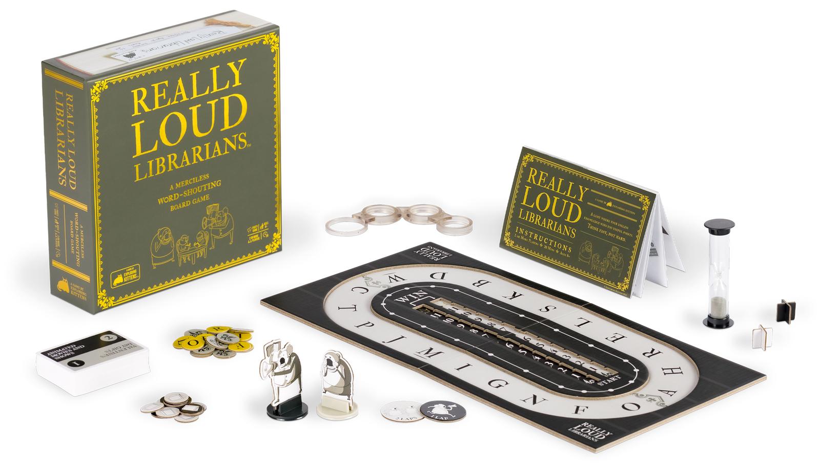 Get ready to shush the competition in Really Loud Librarians! This high-energy team party game will have you and your friends racing around the board, shouting out words that fit a given category. But there's a catch – each word must begin with a specific letter on the track.With 60 different category cards and a variety of letter tiles to choose from, Really Loud Librarians offers endless hours of fun and entertainment. And with two librarians, 20 letter tiles, and 14 tokens, you'll have everything you need to get started right away.So gather your friends, set the timer, and get ready to make some noise! The team with the most laps at the end of the game wins. Can you out-shout the competition and become the ultimate librarian champion?*Contents:** Gameboard* 60 Category Cards* 2 Librarian Player Pieces* 20 Letter Tiles* 14 Tokens* 2 Score Markers* Chain* Timer* Instruction Manual