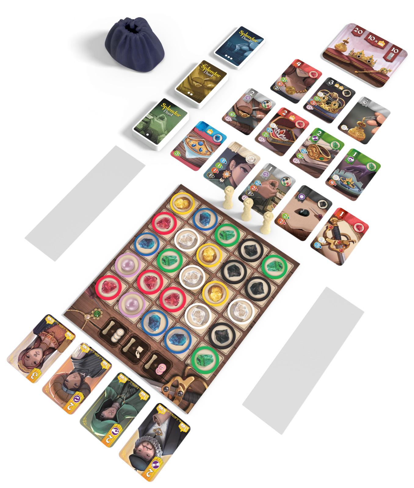 Confront your rival guild in a race for victory. Take Gem and Pearl tokens from the common board, then purchase cards, gather bonuses, royal favours, and prestige.Discover new twists and strategic opportunities derived from Splendor, the original best-selling game. Acquire cards with impressive powers, take advantage of special Privileges, and fight over scarce access to Pearls.Splendor Duel is a two-player-only standalone game based on Splendor that retains some of the main gameplay mechanisms of that design, while being a bit more complex, dynamic, interactive, rich, tense, and mean.The game features a main board shared by both opponents, card powers, and three victory conditions.*The Dice Tower Seal of Excellence is a trademark of The Dice Tower, LLC and is used with permission.*