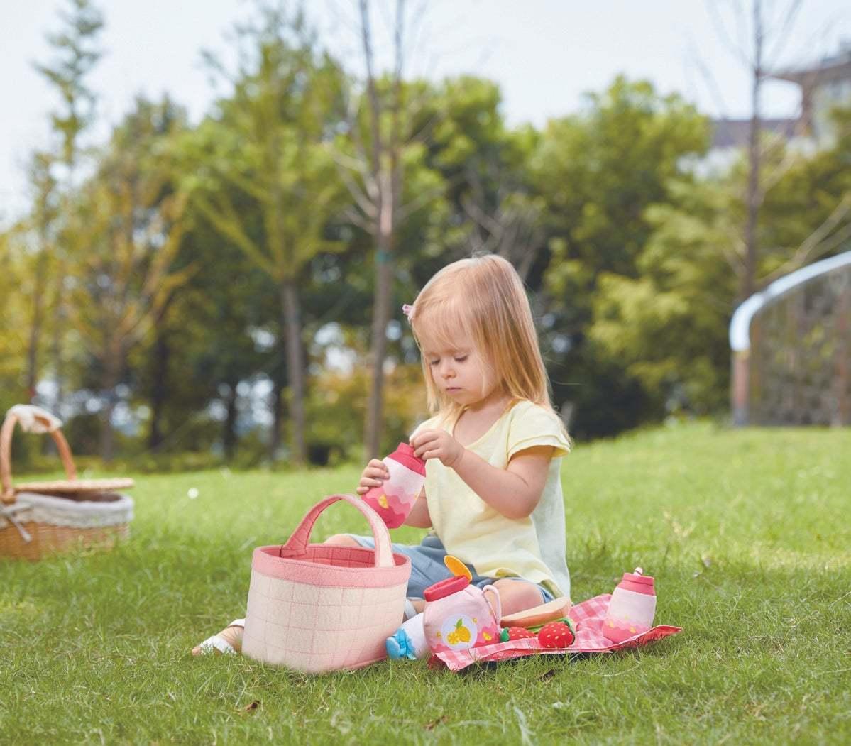 *Hape – Toddler Picnic Basket**Set Includes:** A basket* 1 sandwich* 1 bag of cookies* 2 strawberries* A water jar* 1 bottle* 1 yogurt*Suitable for ages 18m & up*