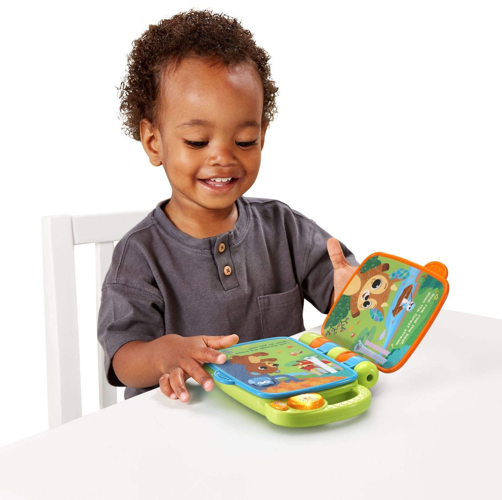 *It’s the perfect time for a nursery rhyme with Animal Rhymes Storytime by VTech!*Wander through forest and farm lands with cute animal guides serenading little ones with modern takes on classic songs like “Row, Row, Row Your Boat” and “Bingo.” What do you see? Flip the pages to find the smart blue owl, quick red fox and more. The sun is shining and ready to play! Press the sun or music notes to hear animal names and their sounds, or to listen to upbeat melodies and tunes. Moo moo, I want to sing with you!*Suitable for Ages 9 Months & Up**2 x AAA Battery Required (Not Included)*