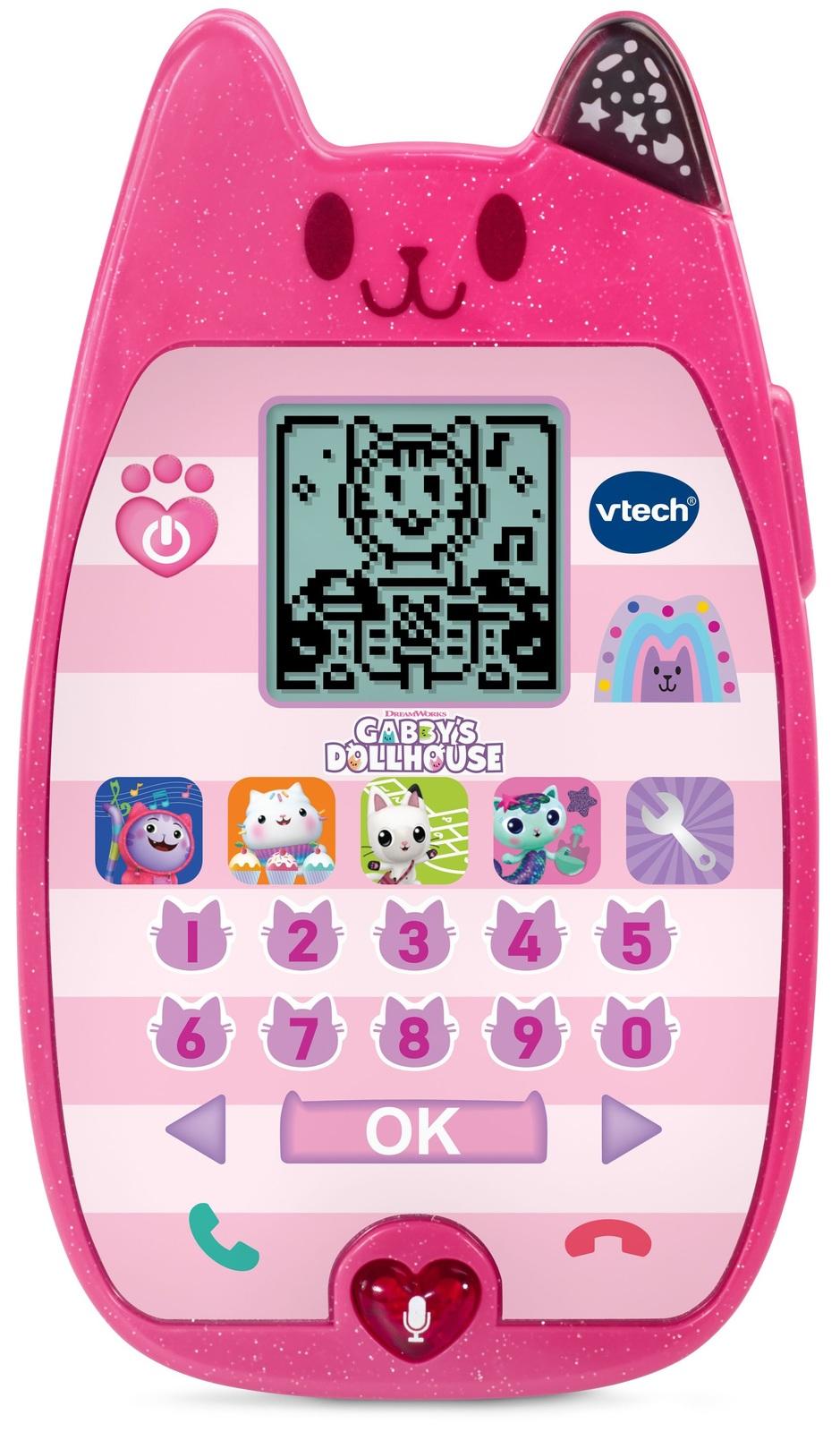 *Give Gabby a ring on the A-Meow-Zing Phone by VTech!*Created to look like the one she uses on the show, Gabby’s Dollhouse, this cat-shaped phone makes it feel like you’re really talking to Gabby – she’ll even respond! Make music, bake a cake, play hopscotch and mix a potion in four games featuring DJ Catnip, Cakey Cat, Pandy Paws, MerCat and Gabby. Get meow mail and learn about Gabby’s kitty friends through voice messages. Personalise your phone by choosing from three ringtones. Purr-tastic!*Suitable for Ages 3 & Up**3 x AAA Batteries Required (Not Included)*