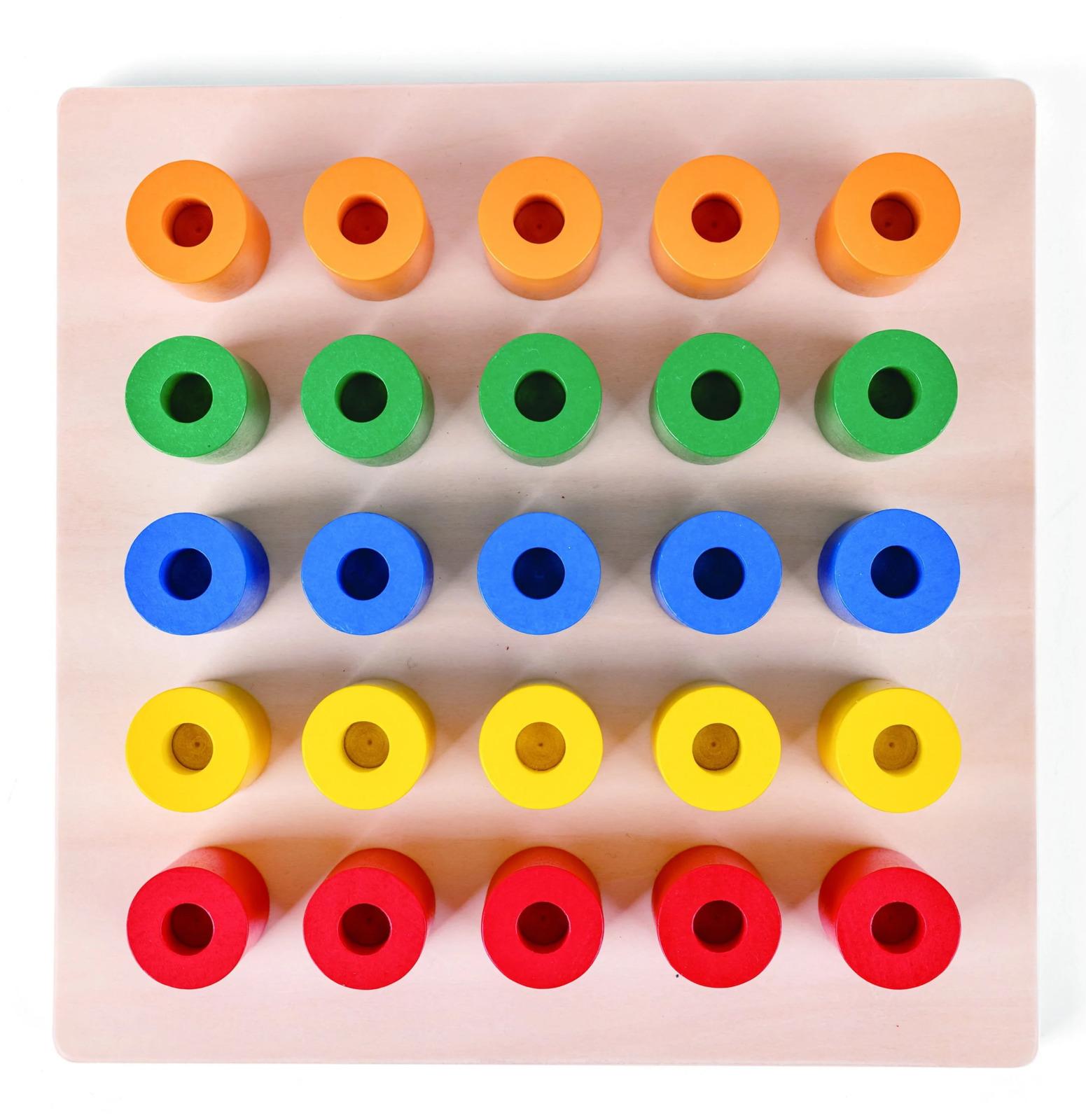 *Hape: Little Room – Build Up Peg Board*This great wooden stacking pegboard encourages your child to recognise colours whilst also developing your child's fine motor skills through the stacking of the pegs.*Features:** The Board comes with 25 wooden pegs in 5 different colours.* Allows kids to practise their fine motor skills.* Solid wooden construction.*Suitable for ages 3 & up*