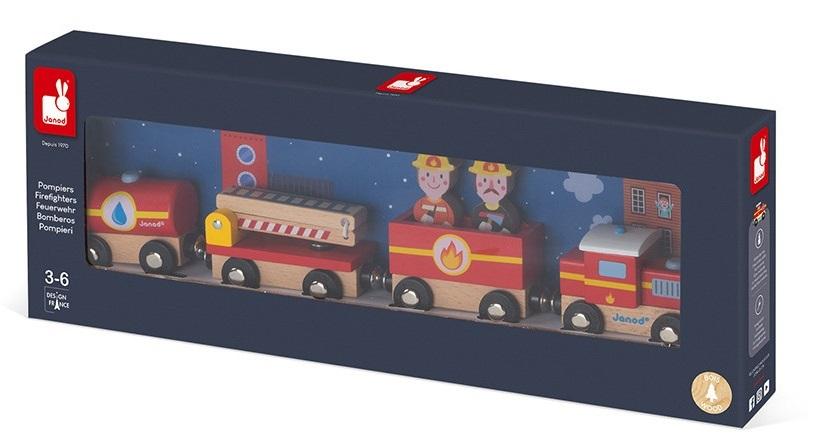 *Young firefighters everywhere will love role playing their favourite rescue stories.*The Story Firefighters Train has 6 pieces made from wood and each carriage magnetically attaches to the next. Complete with 2 firefighters in their own carriage, a locomotive, water carriage and a carriage with a ladder that is telescopic and rotates and has moving wheels to speed to the fire, this train will be a hit in the playroom.*Product Dimensions: 34.3cm x 3cm x 8.3cm**For Ages 2 to 6*