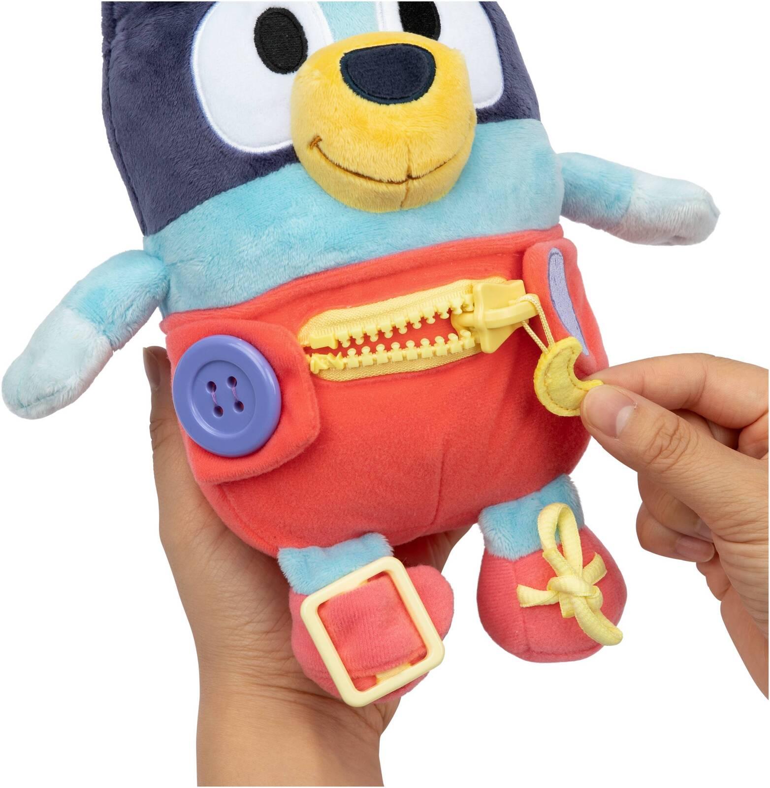 *Now your child can have fun learning how to dress with Bluey!*Dress & Play Baby Bluey is designed for your little one to practice their fine motor skills. Baby Bluey wears a diaper with buttons and a zipper, and shoes with a buckle and shoelaces – making it a fun, hands-on way for toddlers to learn how to button, zip, buckle, and tie through play.*Features:** At 5.4 cm tall, Baby Bluey is just the right size for little learning fingers.* Kids will love to get Bluey ready for a new adventure every day!* Made from super soft plush with deluxe fabrics, Dress & Play Baby Bluey is perfect for cuddles and play.